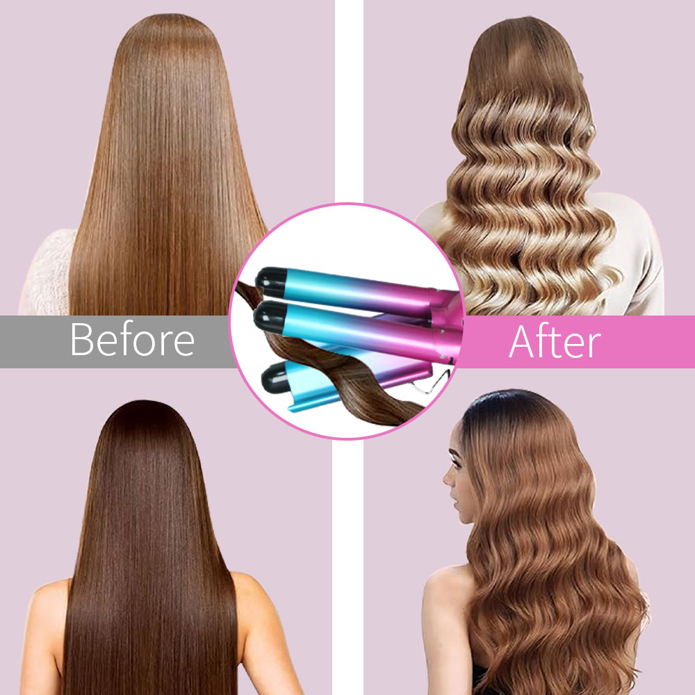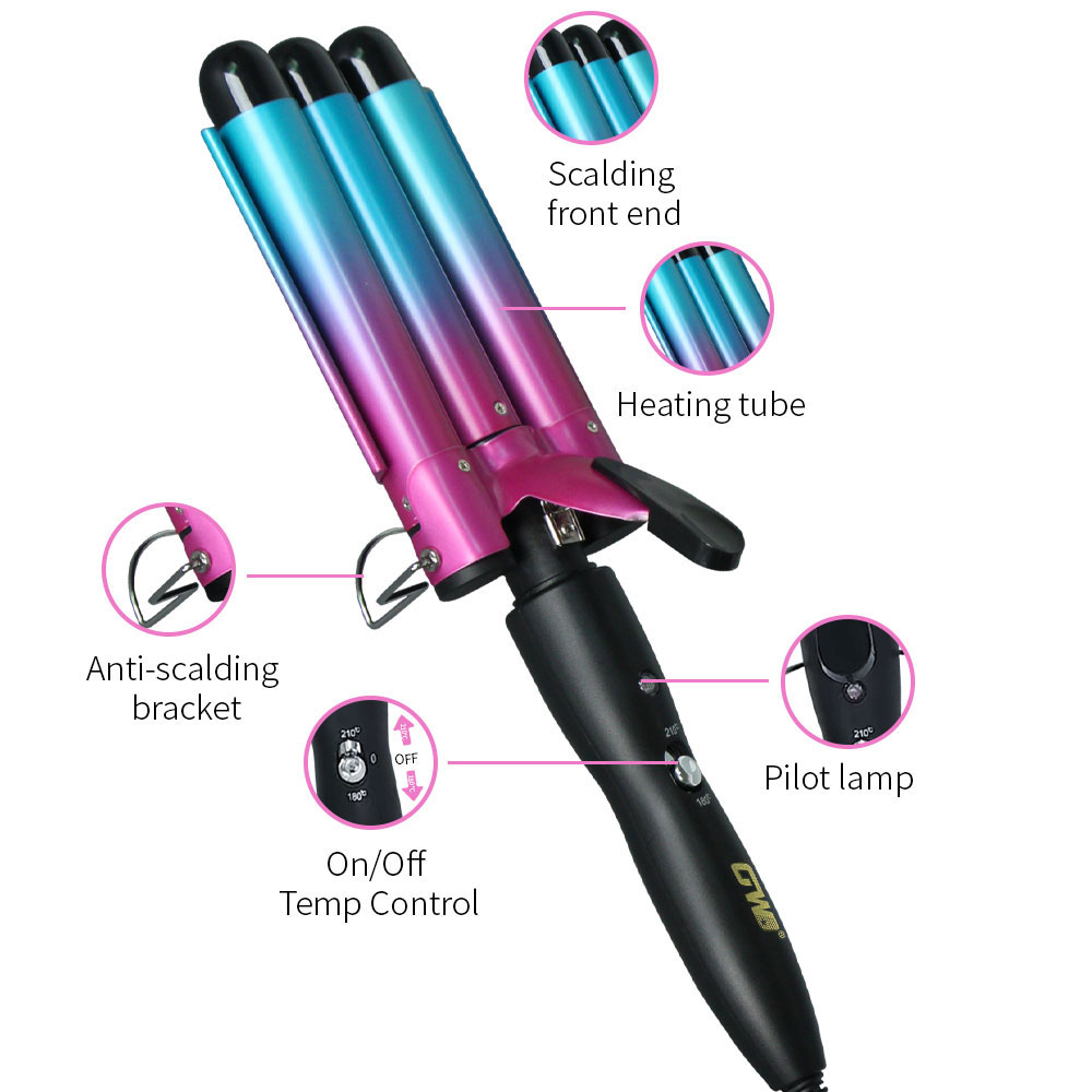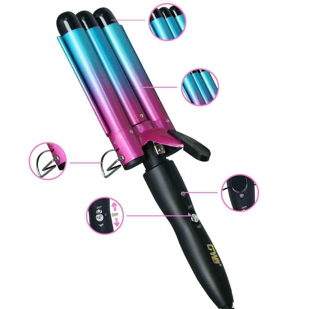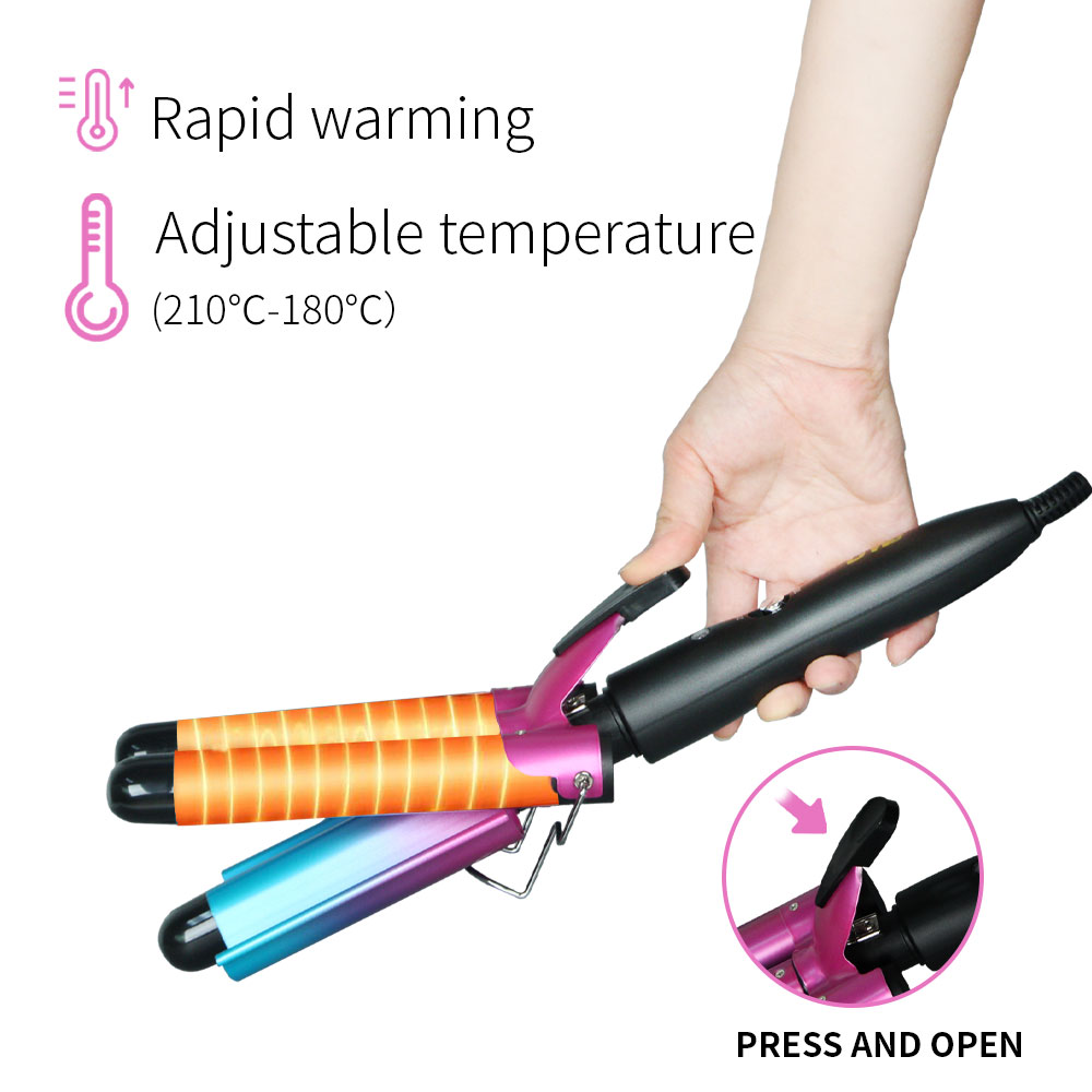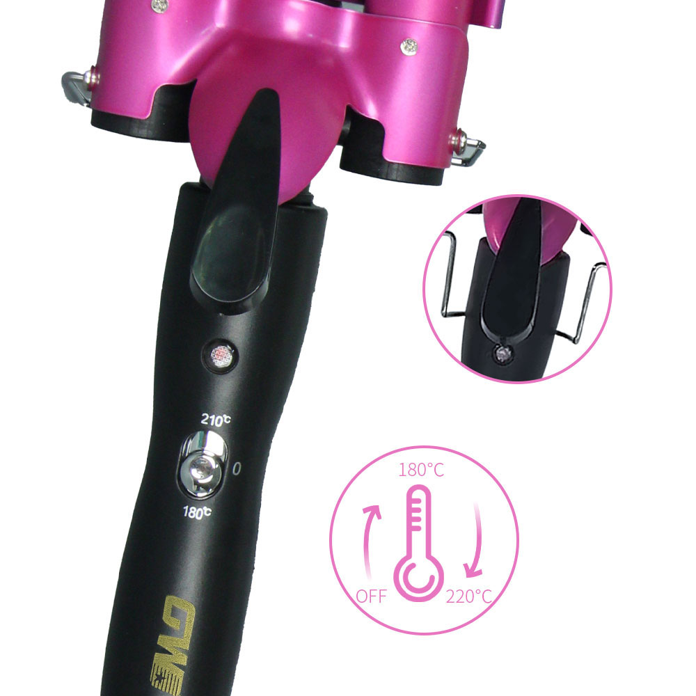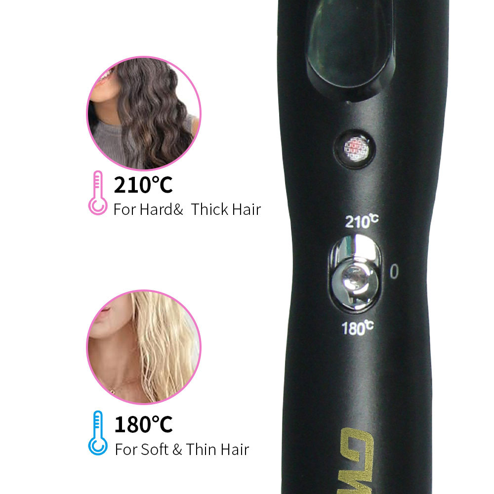 [professional hair curler] create long-lasting curly hair with one click, ceramic coated hair care does not hurt hair, fast heating in 30 seconds, 5-gear temperature control to meet different hair quality needs. solve the pain points of traditional hair curler that damage hair quality and shape not lasting. voltage: 110v-220v frequency: 50-60hz temperature: 180-210°c power: 70-120w box size: 38*9*8.8 ptc heater indicator light