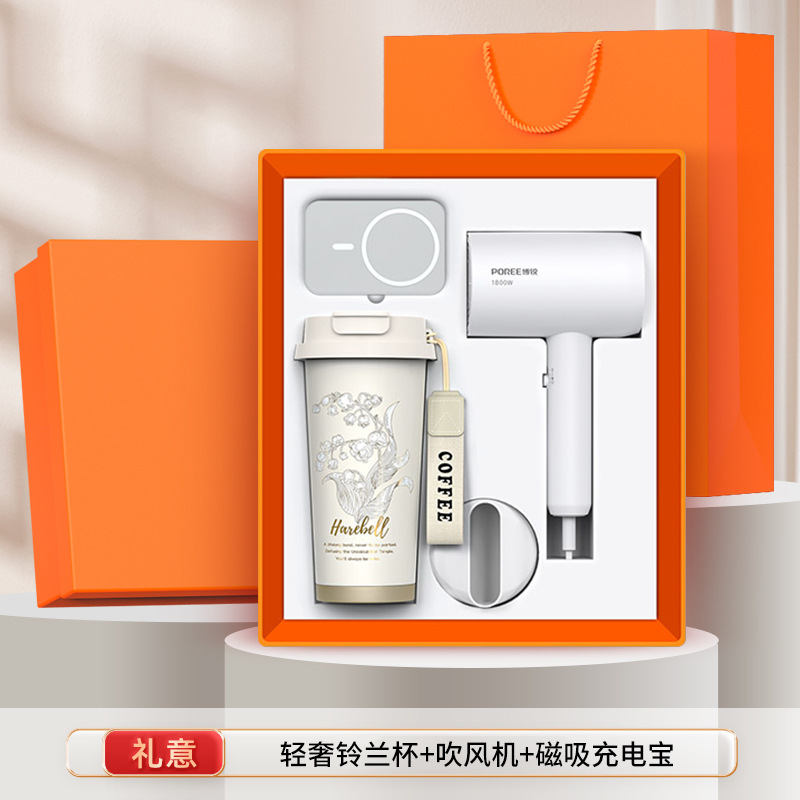 borui hair dryer + linglan coffee cup + square with line power bank [white three-piece set]]