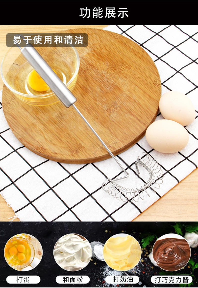 304 stainless steel manual eggbeater spring coil egg blender cream stirring rod baking tool 中文版