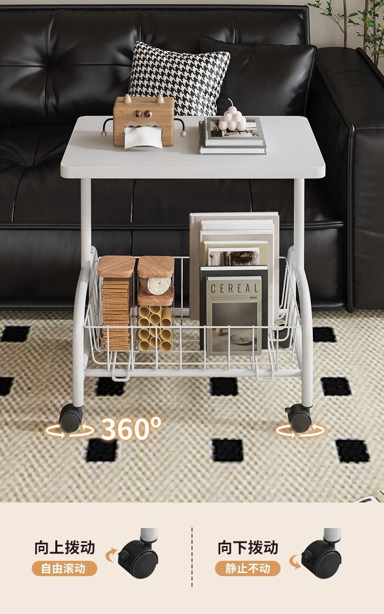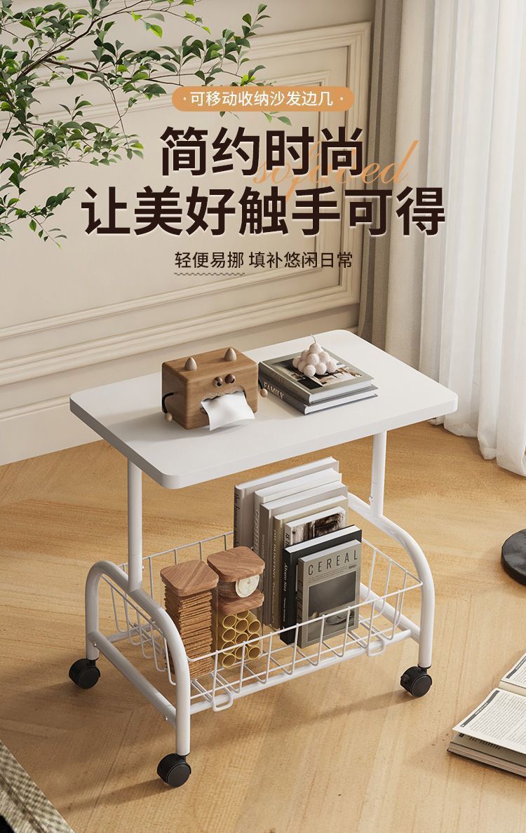 removable storage sofa side table living room double-layer storage small table with wheels modern minimalist trolley small coffee table