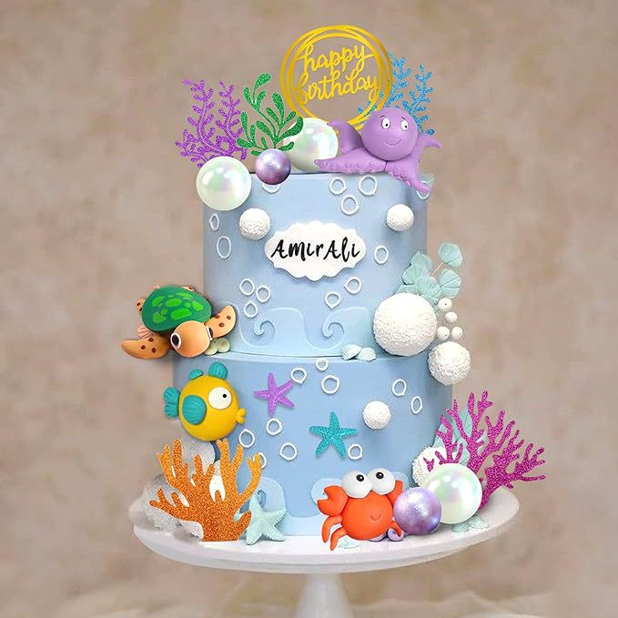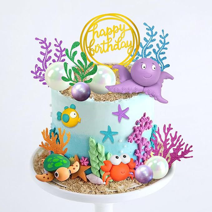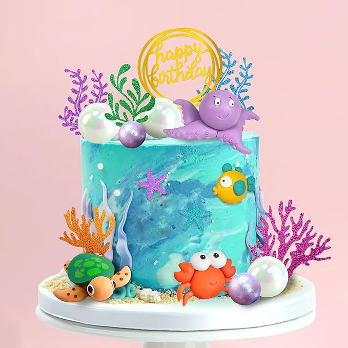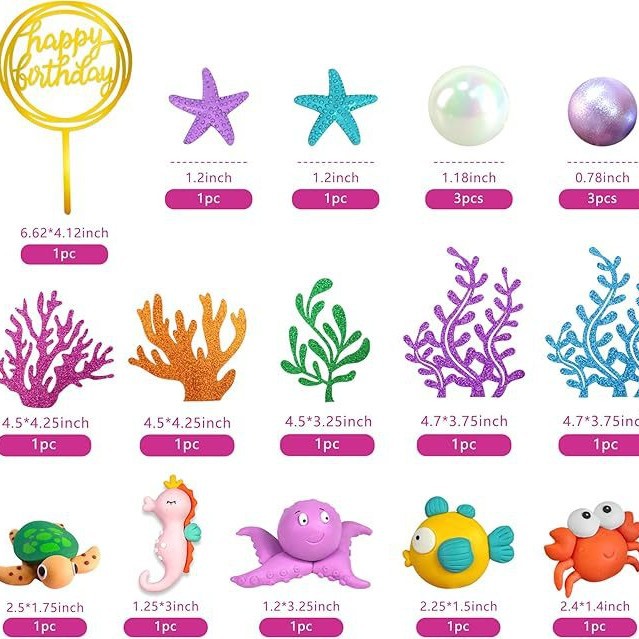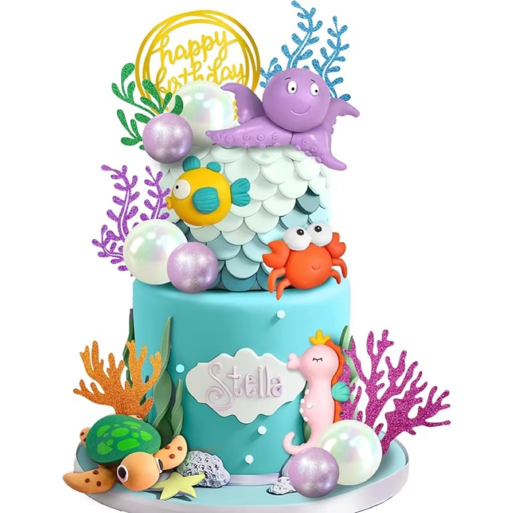 19 pieces marine animal cake decoration marine animal cake cover underwater cake decoration marine theme 中文版