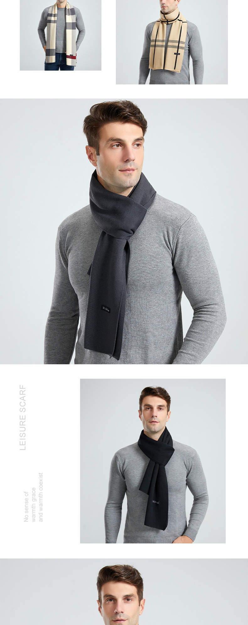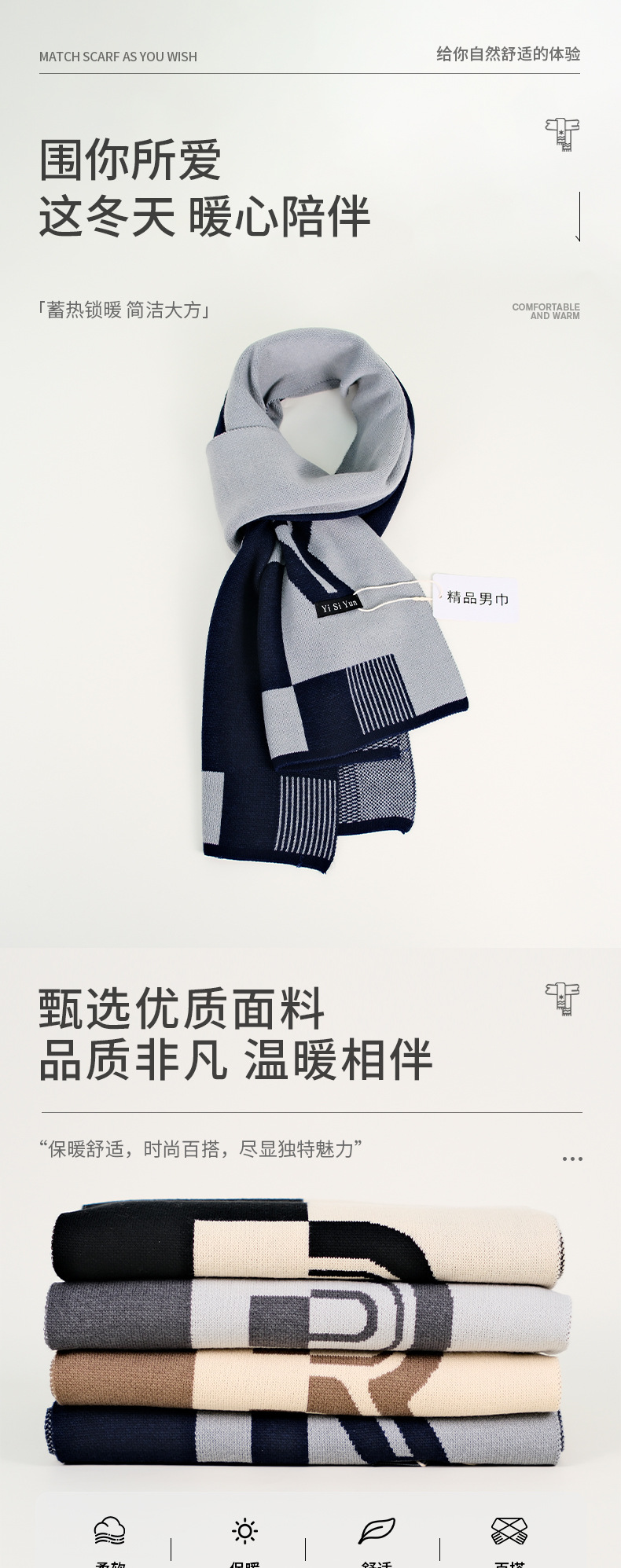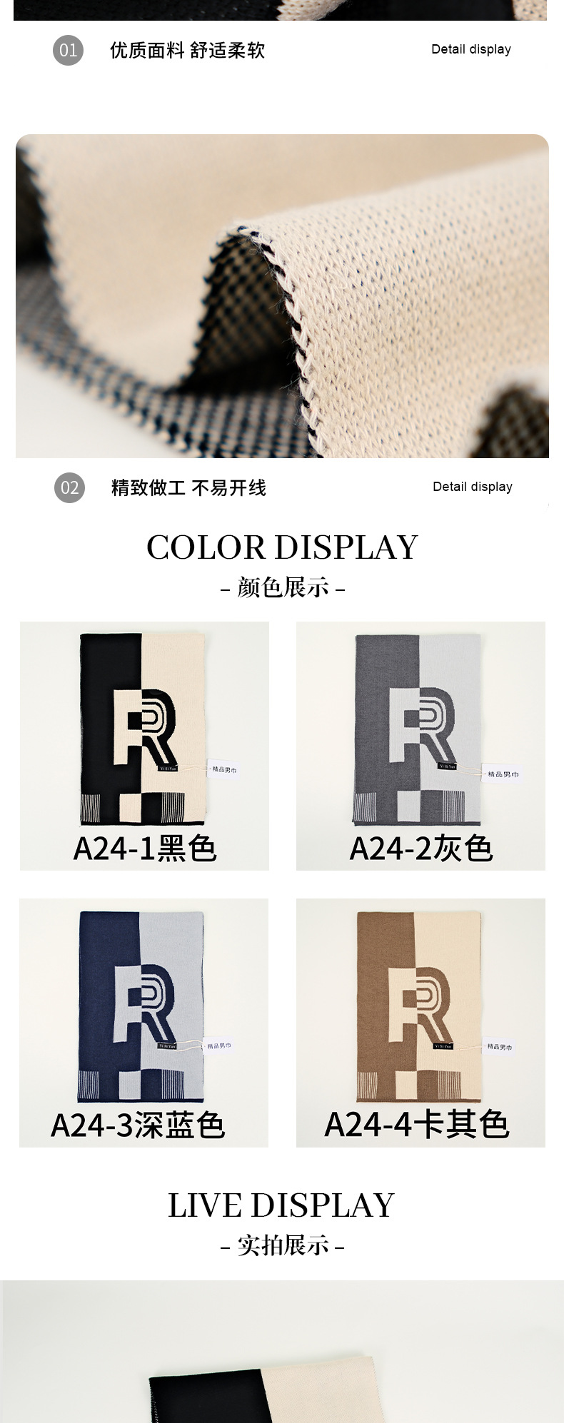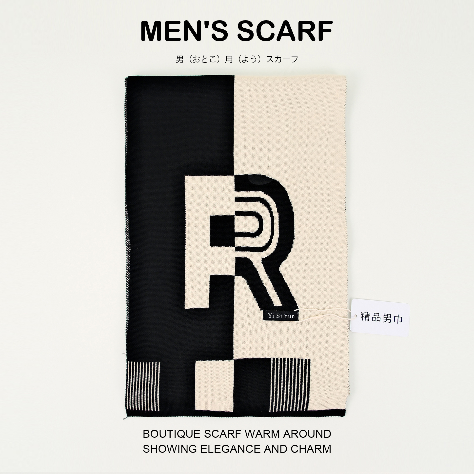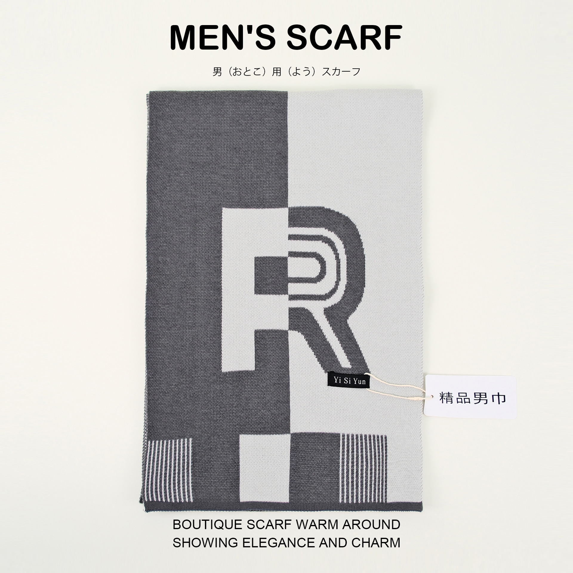 autumn and winter new men's scarf high-grade cashmere-like knitted warm r letter japanese fashion light business scarf 中文版