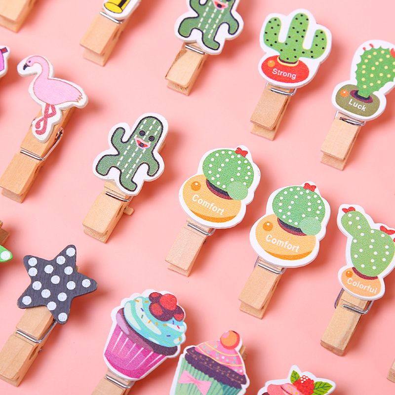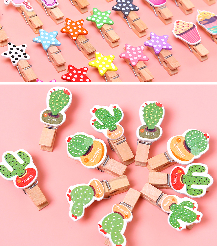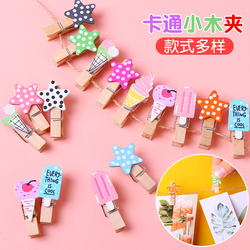 color pattern photo folder wooden clip hanging photo wall decorative hemp rope photo wood cartoon creative cute 中文版