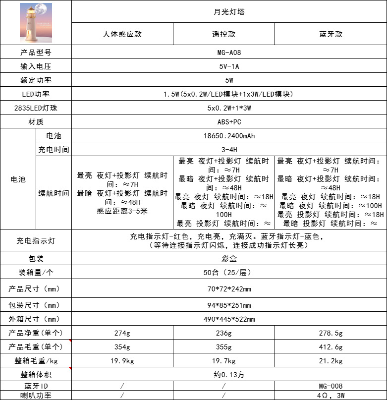 Cross-border hit products Amazon hot-selling new products foreign trade models new products moonlight lighthouse projection atmosphere lamp internet celebrity night light