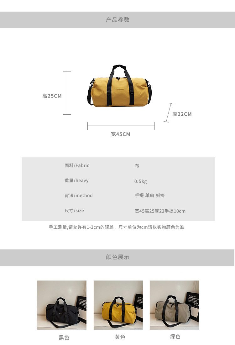 cross-border new arrival hand-carrying business trip travel luggage storage bag large capacity waterproof fitness sports yoga cross-body bag tide 中文版