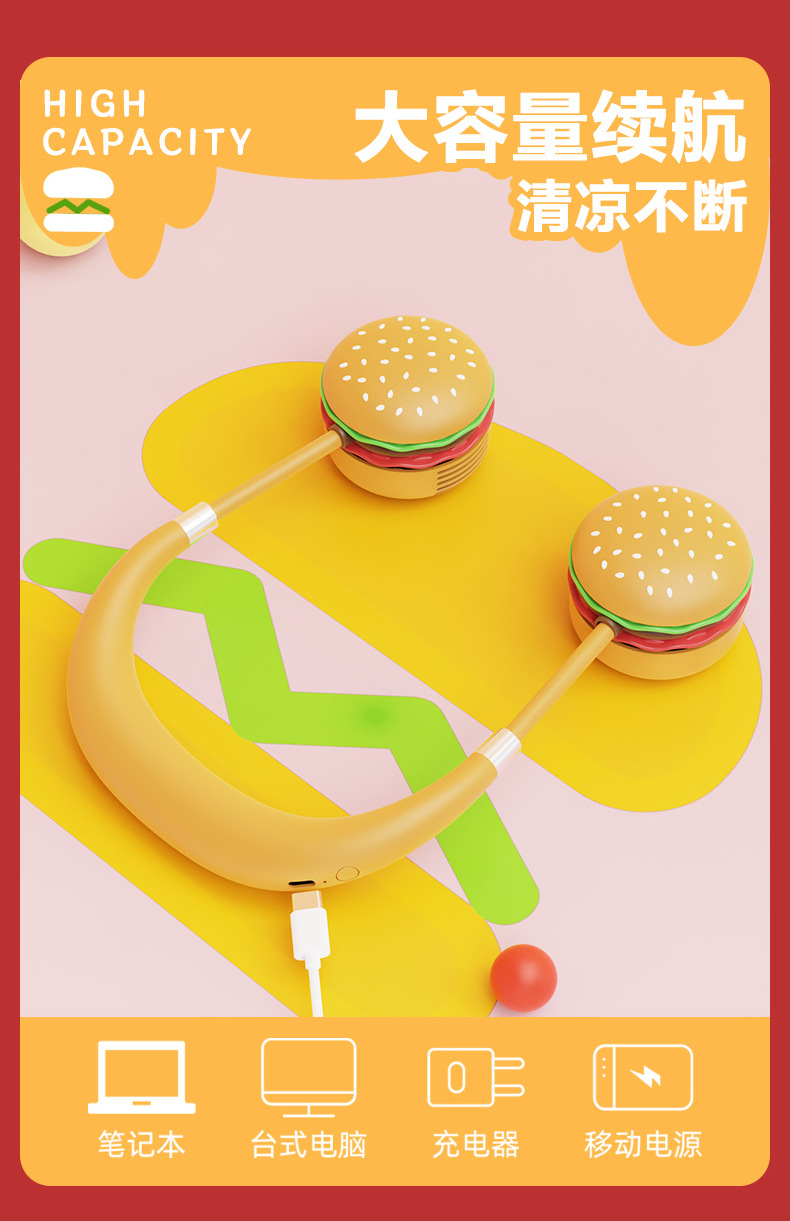 Cartoon Necklace Fan: A Must-Have for Lazy People, USB Fan for Students and Sports Outdoors, Clearance Price Wholesale, Charging Production with Longer Battery Life, Buster Cartoon Necklace Fan