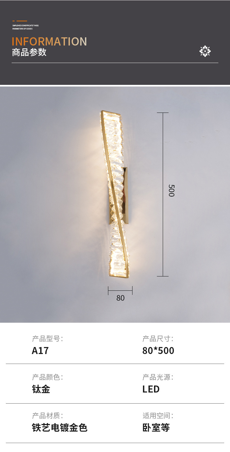 post-modern led crystal wall lamp bedroom bedside lamp high sense villa hotel living room corridor aisle wall lamp 中文版