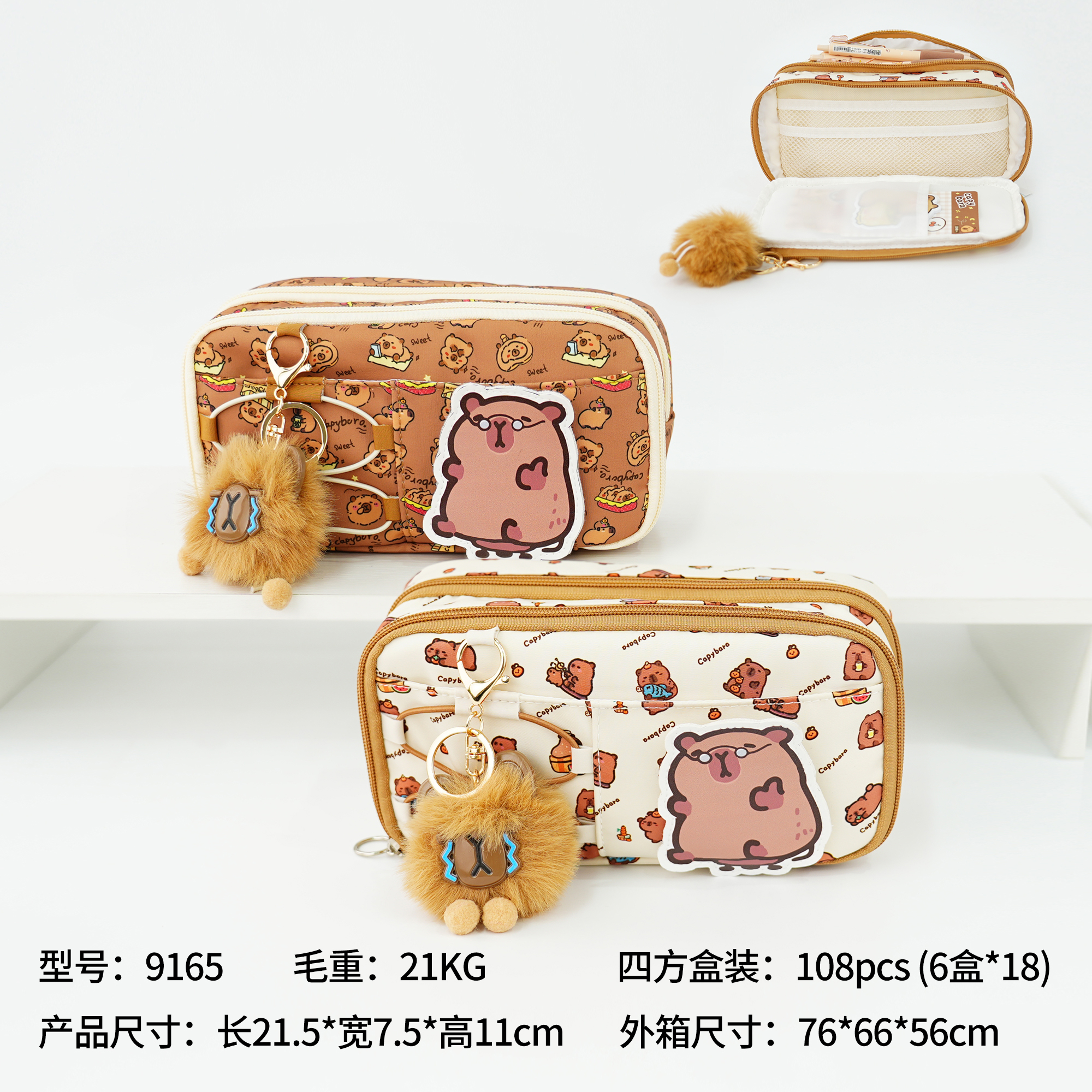 double-layer capabala flip pencil case creative cartoon junior high school boys and girls stationery case large capacity stain-resistant pencil bag 中文版