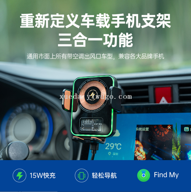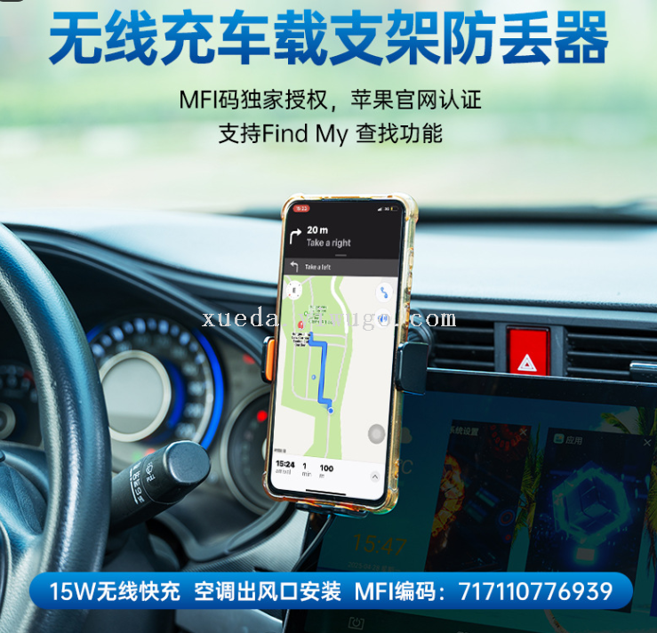 air outlet 15w wireless fast charging car phone holder find my anti-loss alarm device positioning vehicle search