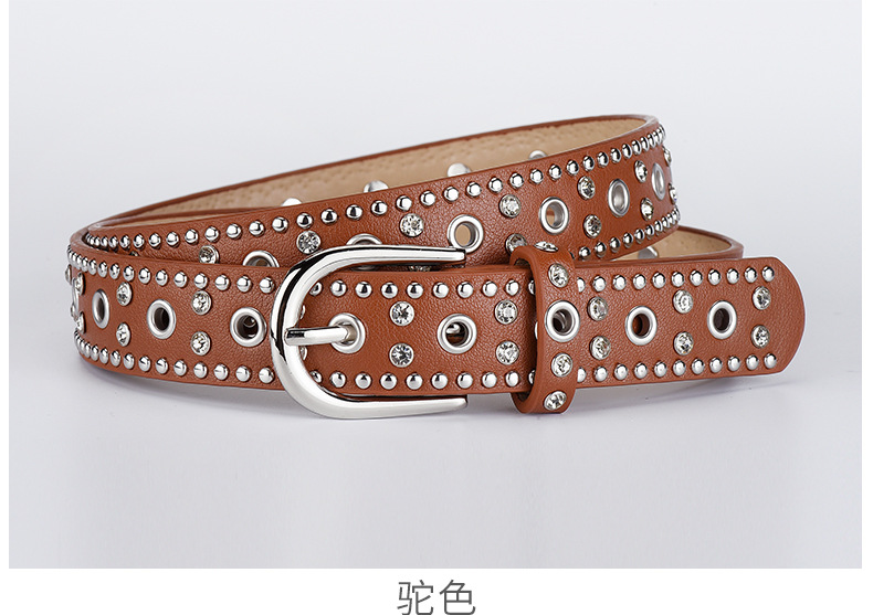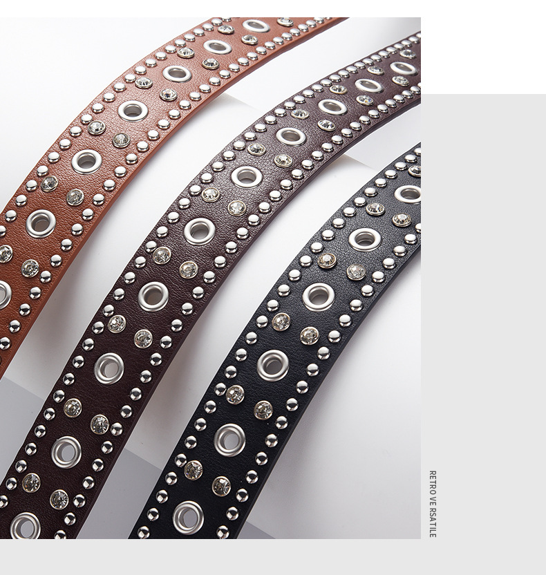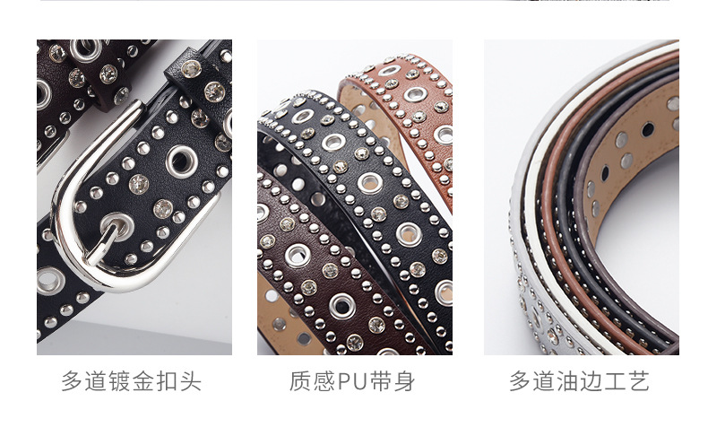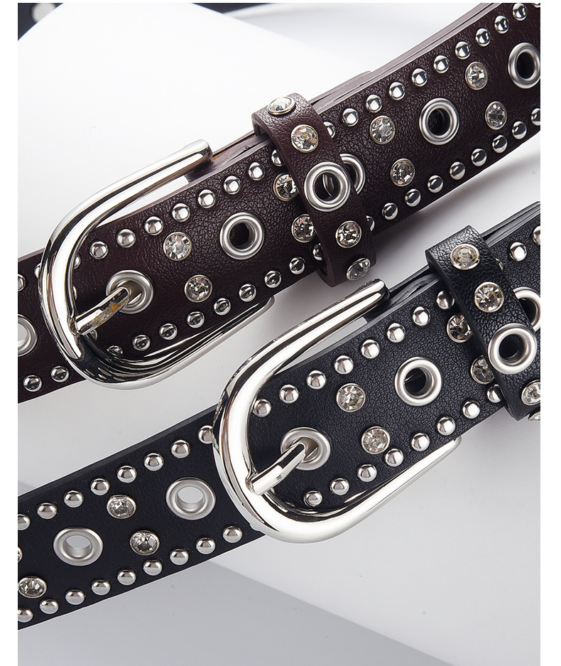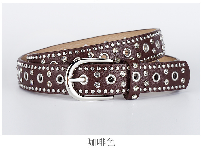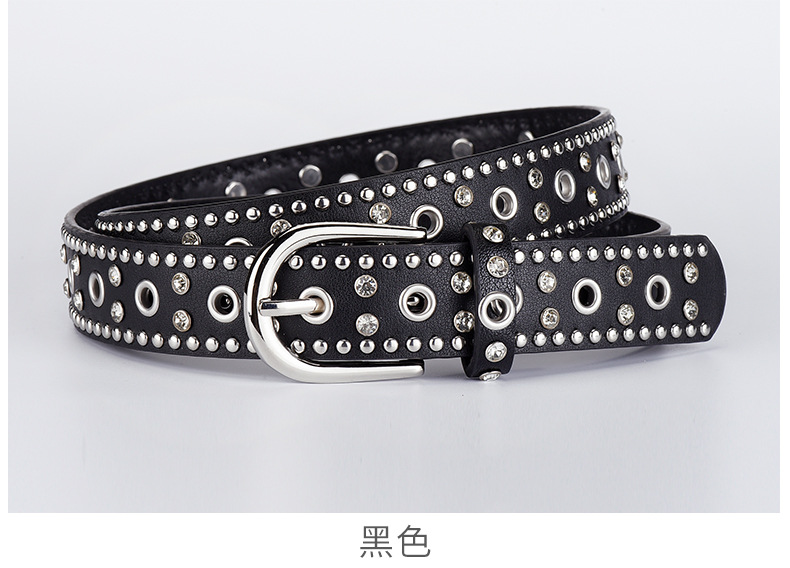 low-profile commuter double row claw beads black men's and women's belts decorative punk leisure retro alloy buckle belt 中文版
