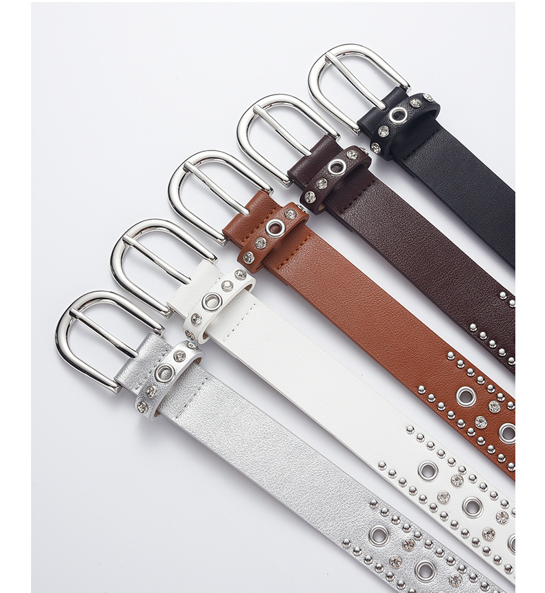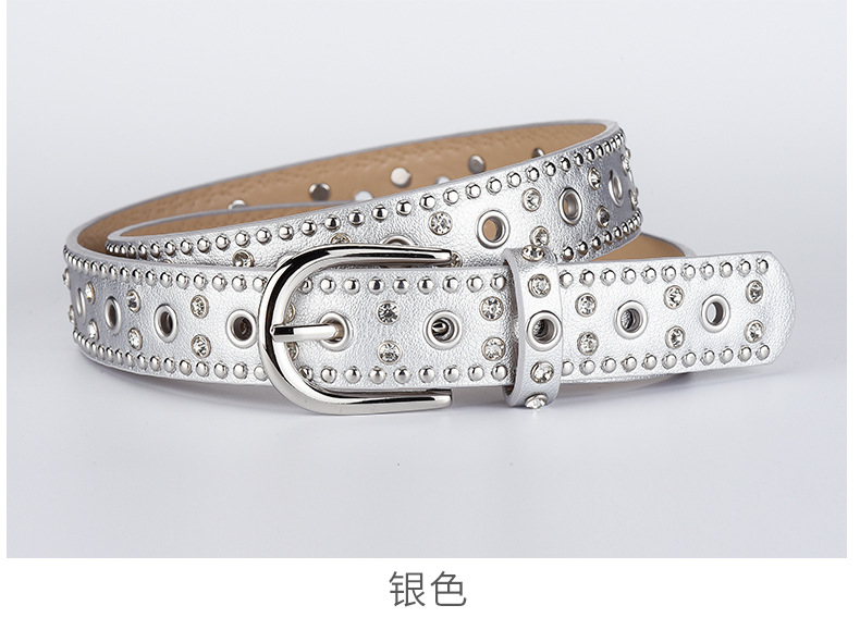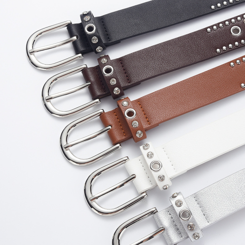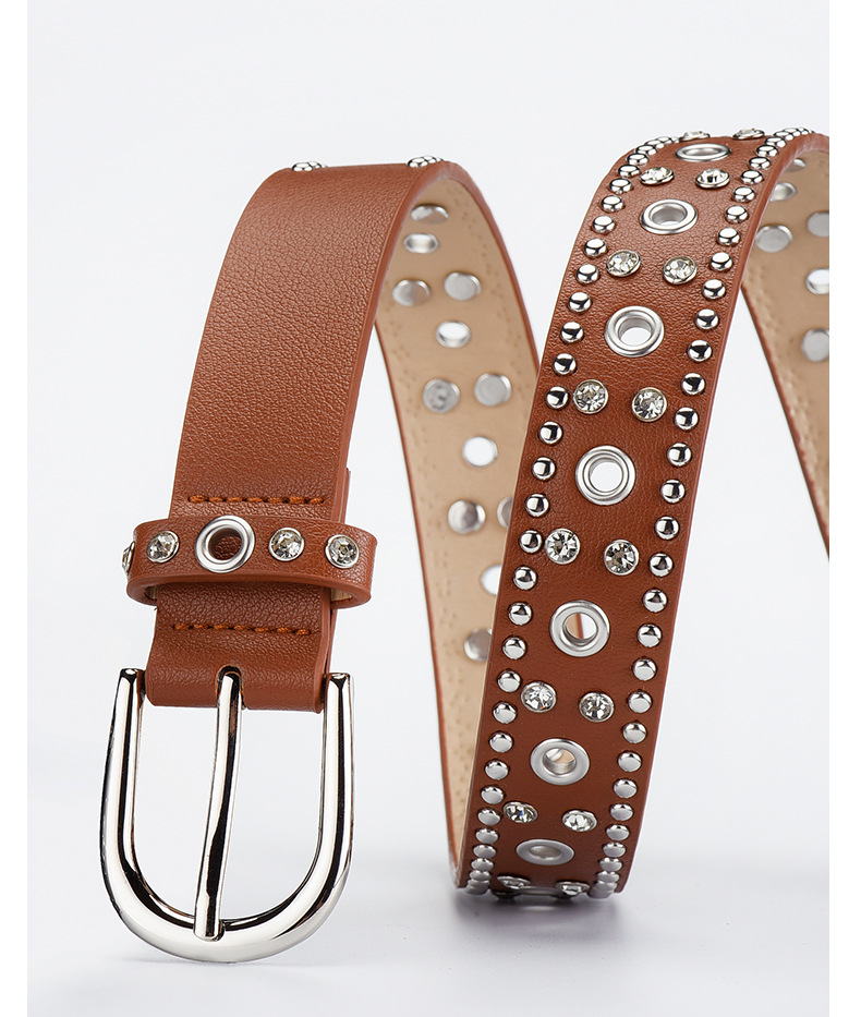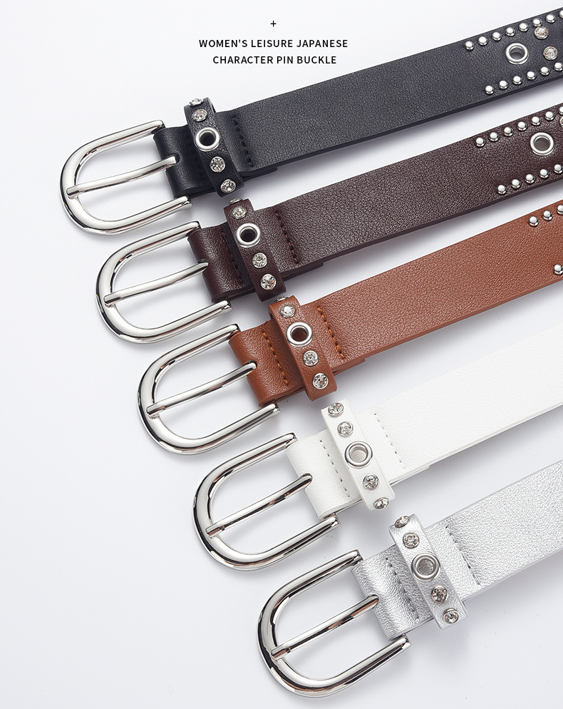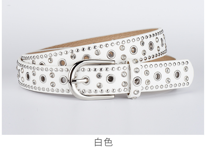 low-profile commuter double row claw beads black men's and women's belts decorative punk leisure retro alloy buckle belt 中文版