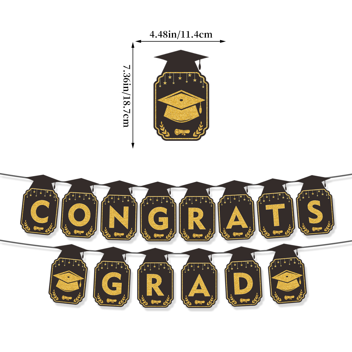 Packing: OPP bag6-pack graduation spiral18*18.5cm,Graduation Balloon14.5*12.5cm,Honeycomb ornaments 4 pieces, 17*18.5cm, flag13.5*22cm
