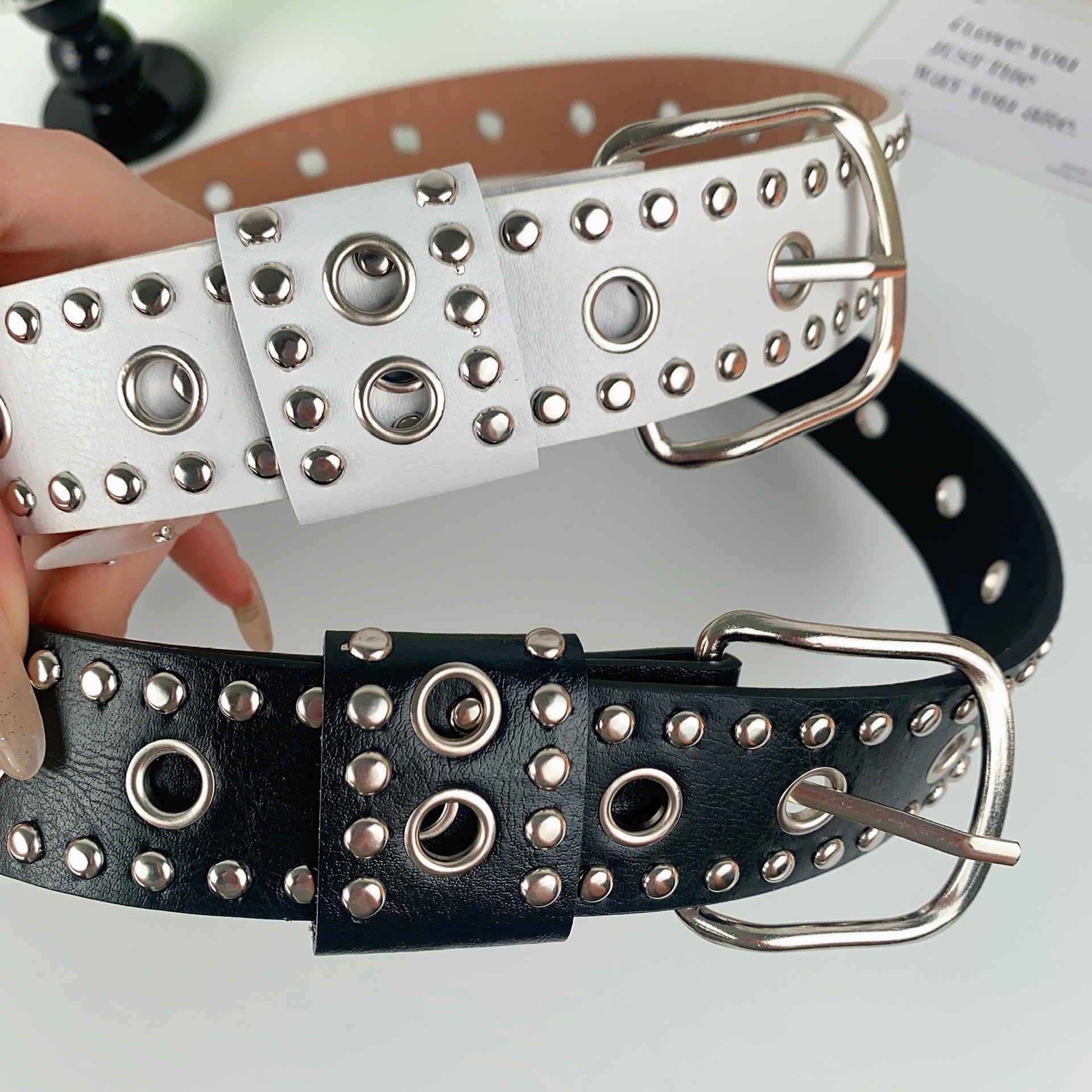 european and american punk porous rivet belt women's sweet cool personality hip hop belt special-interest design all-matching clothing accessories 中文版