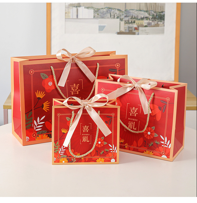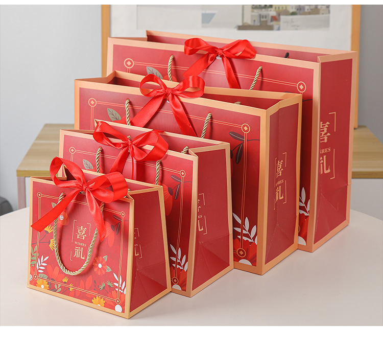 0105 paper bag + red ribbon; white cardboard; large size length 36 * height 25 * width 12