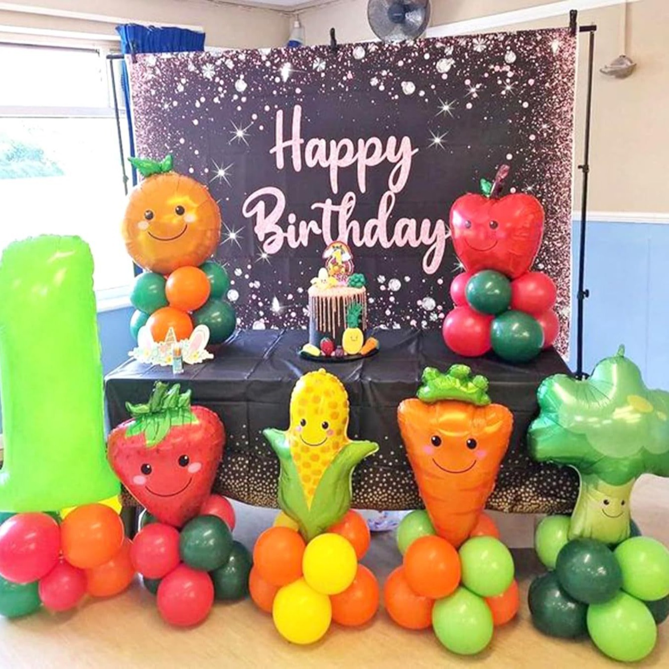 141-piece vegetable and fruit theme balloon chain suit banana carrot apple boy girl birthday balloon 中文版