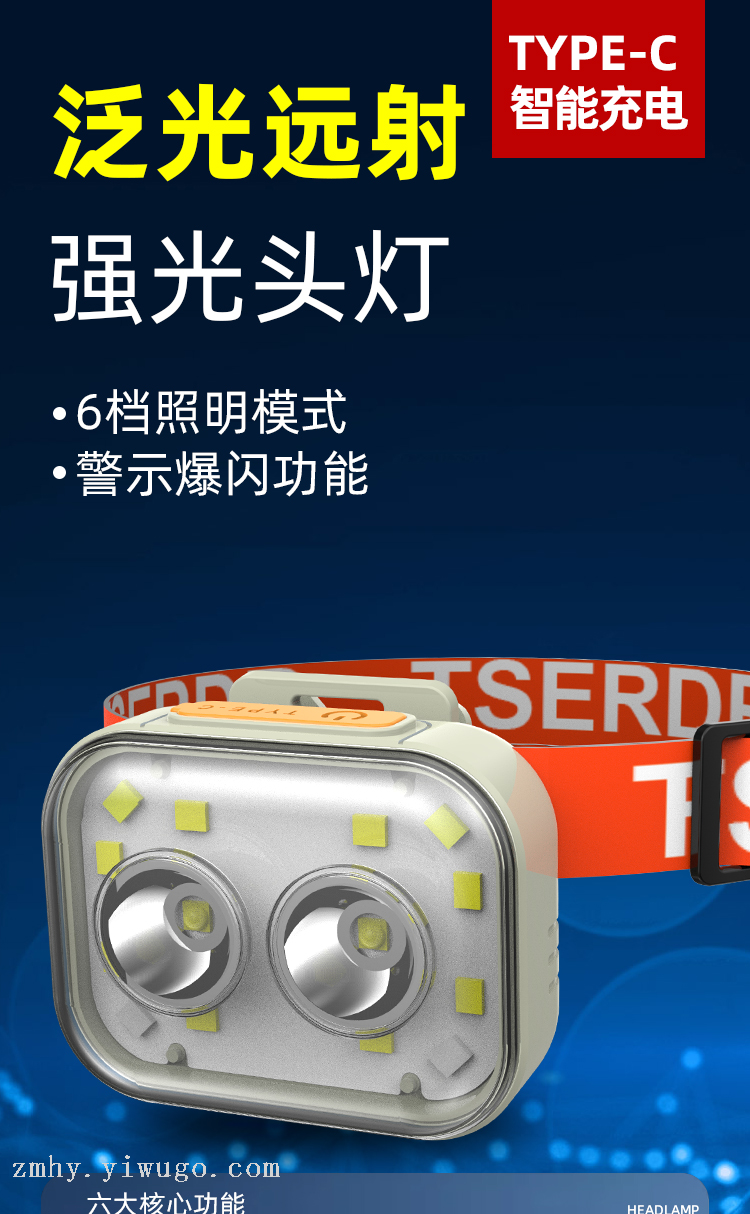 cross-border new arrival led high-power major headlamp headlamp outdoor night fishing mountain climbing head-mounted flashlight hat clip lamp 中文版