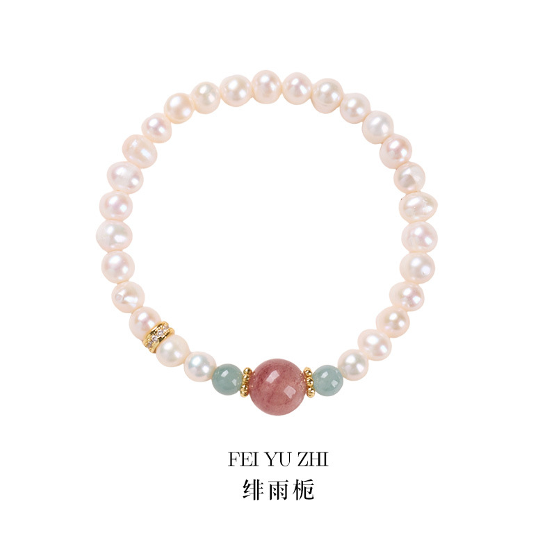 [yuzhi] 6mm freshwater pearl blue water strawberry quartz bracelet