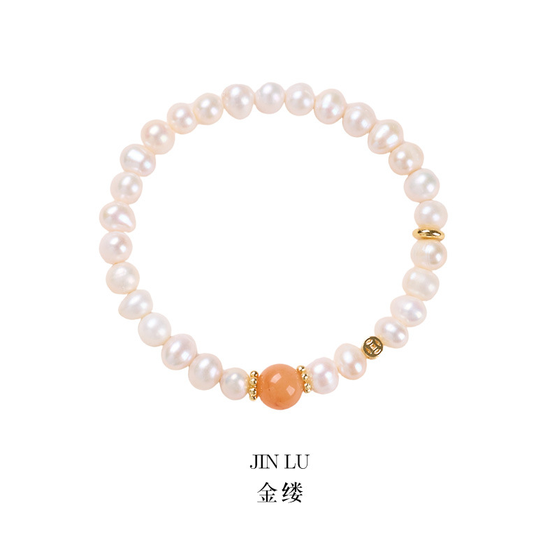 [golden thread] 6mm freshwater pearl jinsi jade hollow coin bracelet