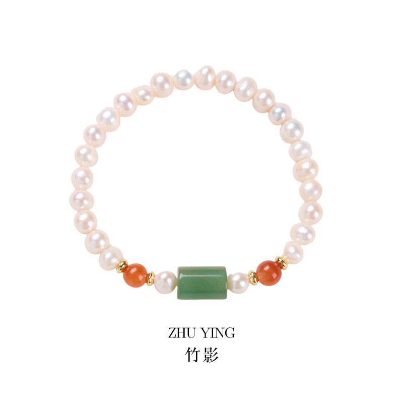[bamboo shadow] 6mm freshwater pearl jinsi jade green dongling barrel shaped bead bracelet wrist size 16cm