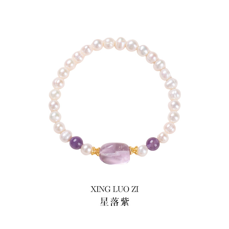 [star purple] 6mm freshwater pearl amethyst with shape bracelet