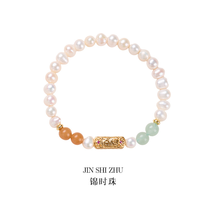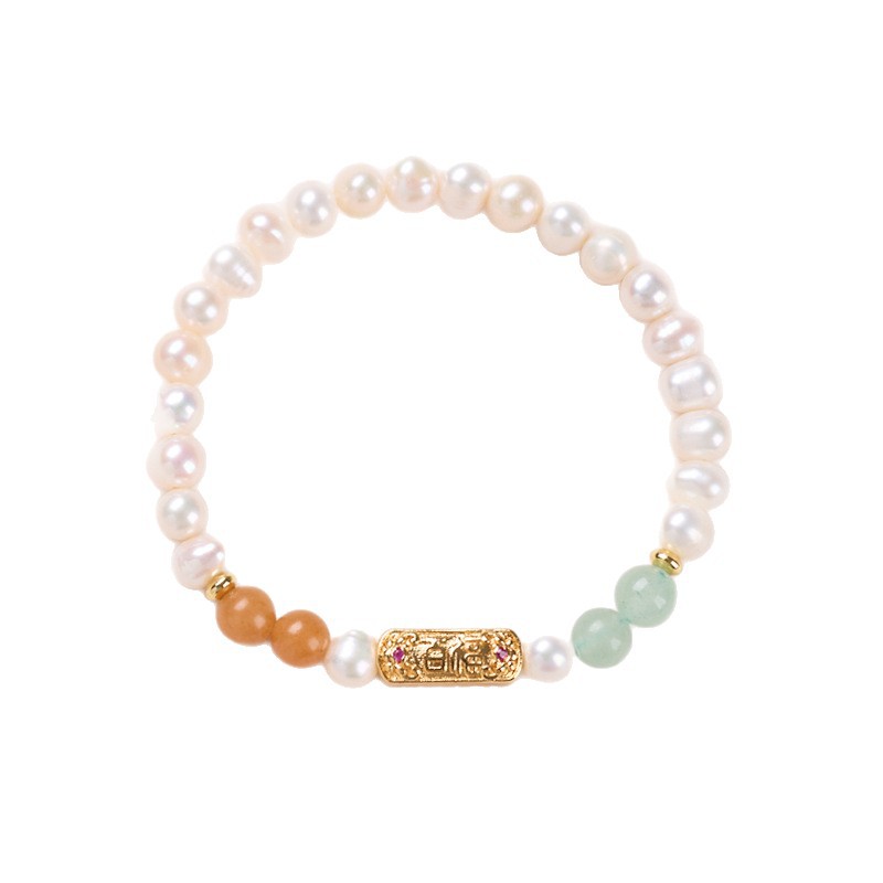 [jinshi beads] 6mm freshwater pearl green dongling copper-plated gold design bracelet