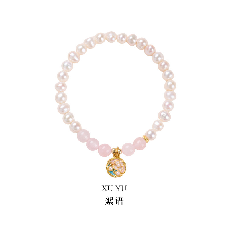 [rongyu] 6mm freshwater pearl pink crystal enamel small flower bracelet