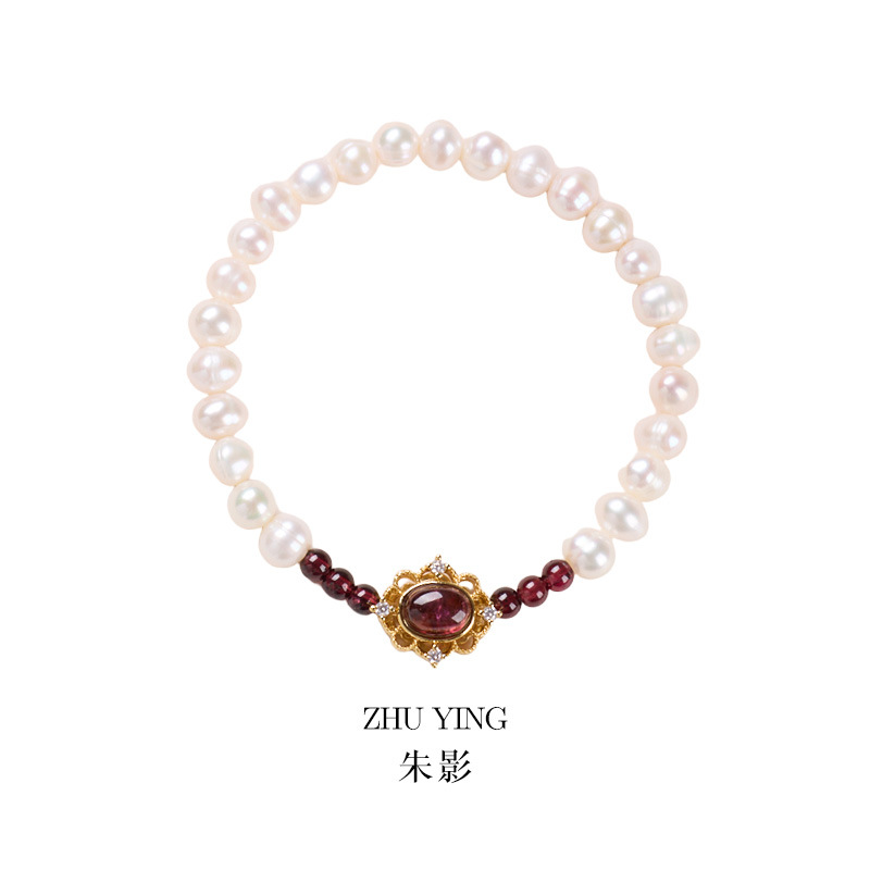 [zhu ying] 6mm freshwater pearl garnet bracelet