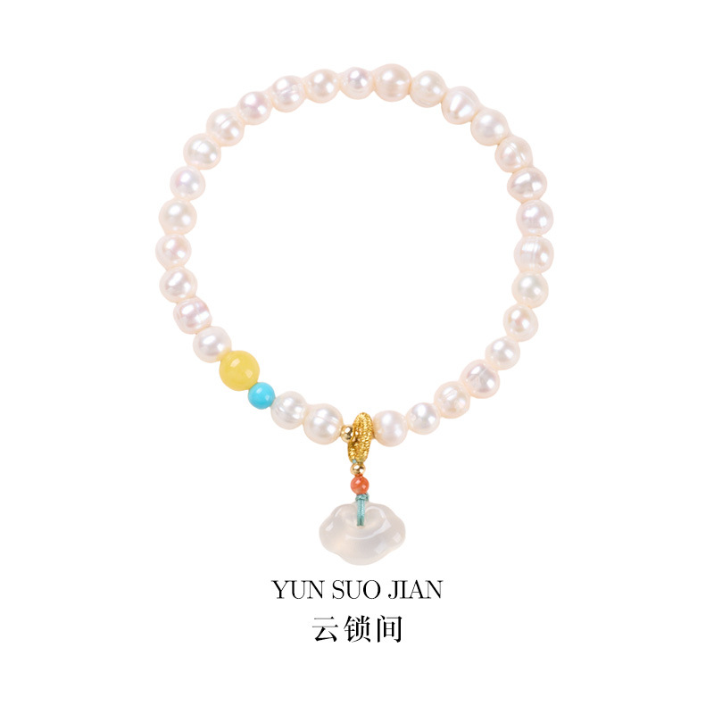 [cloud lock room] 6mm freshwater pearl chalcedony xiangyun lock of good wishes
