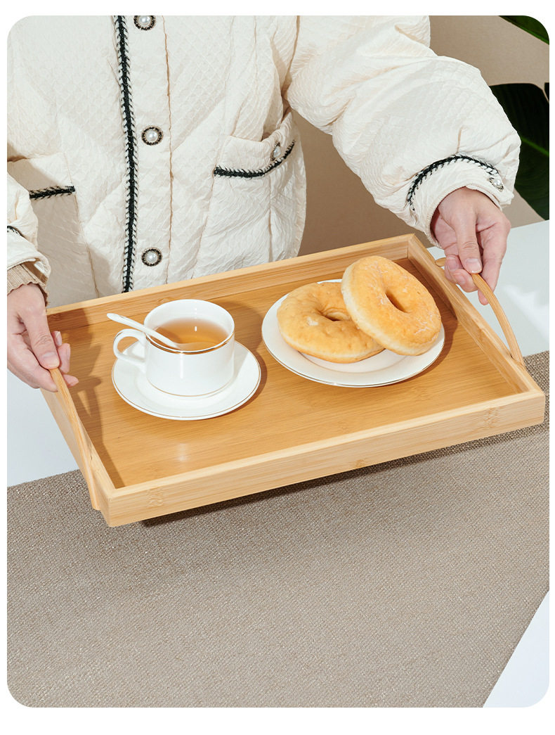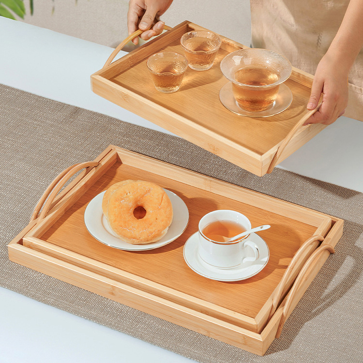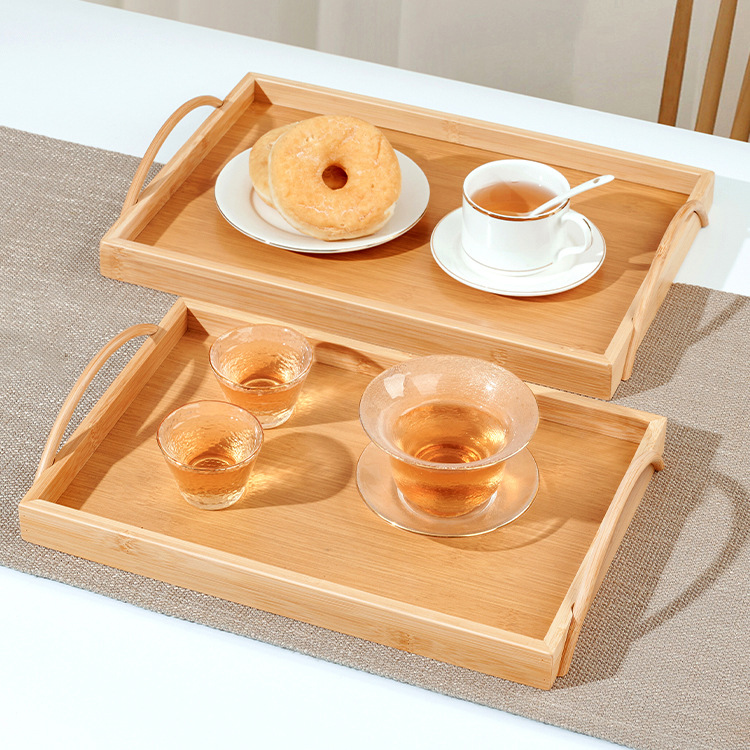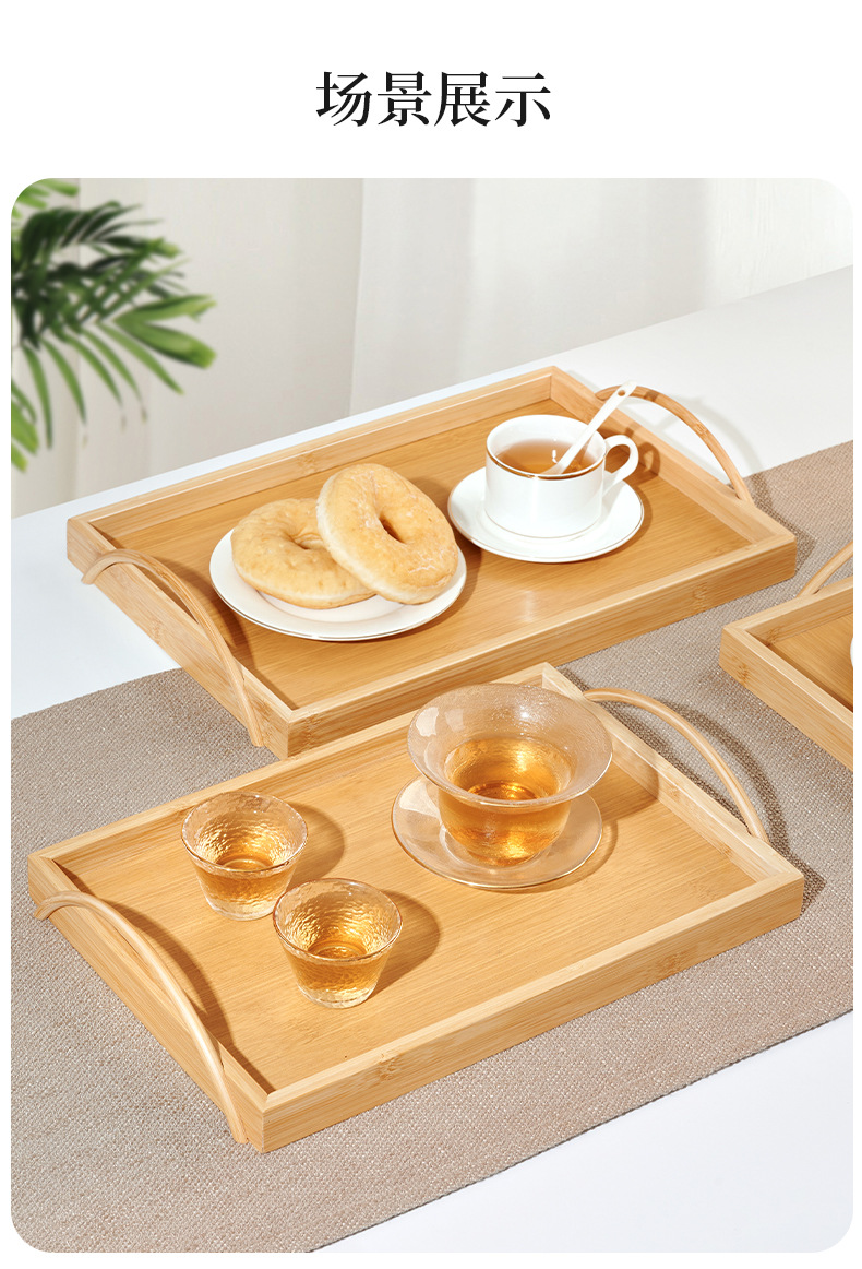 tray bamboo rectangular tea tray commercial solid wood tea cup cup storage home living room and hotel restaurant barbecue plate 中文版