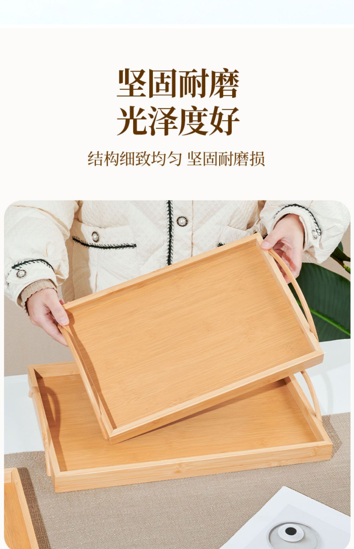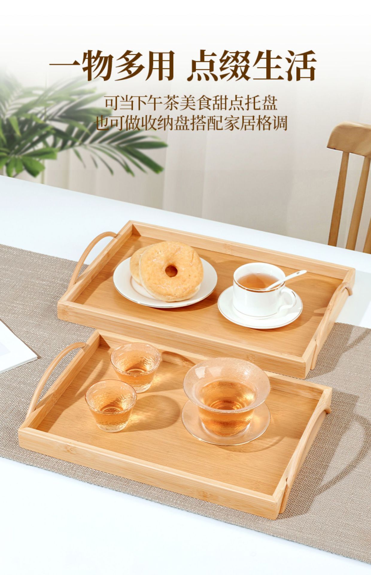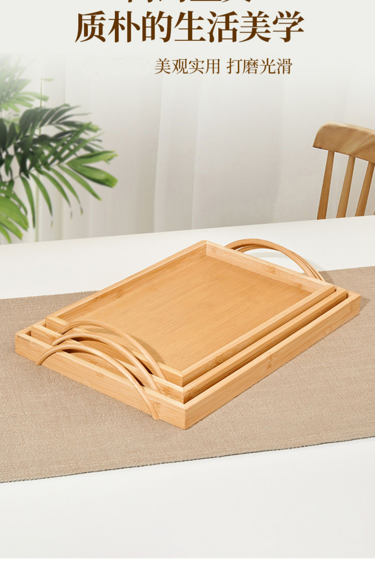 tray bamboo rectangular tea tray commercial solid wood tea cup cup storage home living room and hotel restaurant barbecue plate 中文版