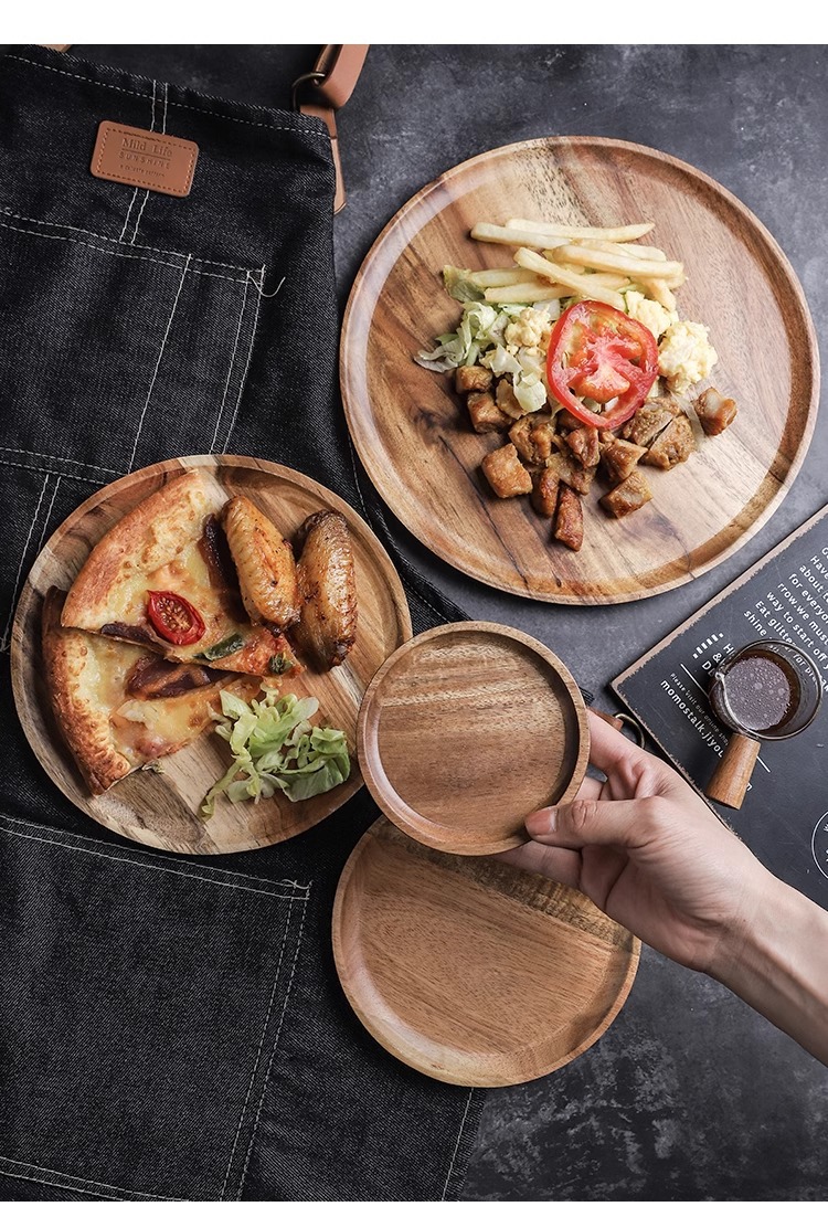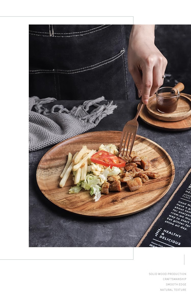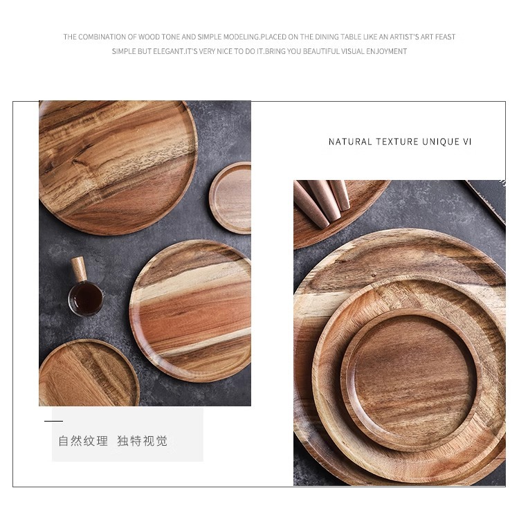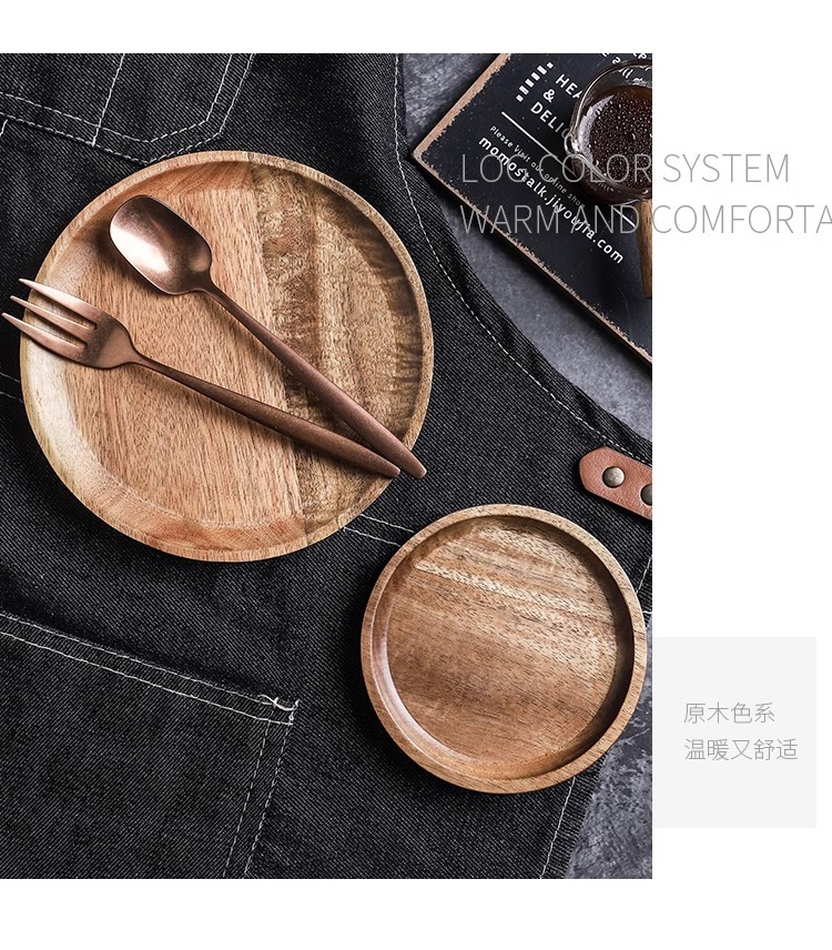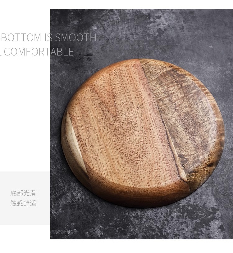 japanese-style acacia wood pallet round breakfast plate solid wood dessert cake plate snack dish household water cup storage tray 中文版