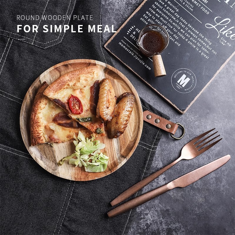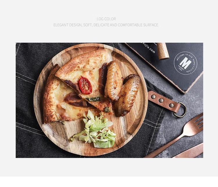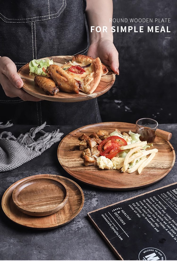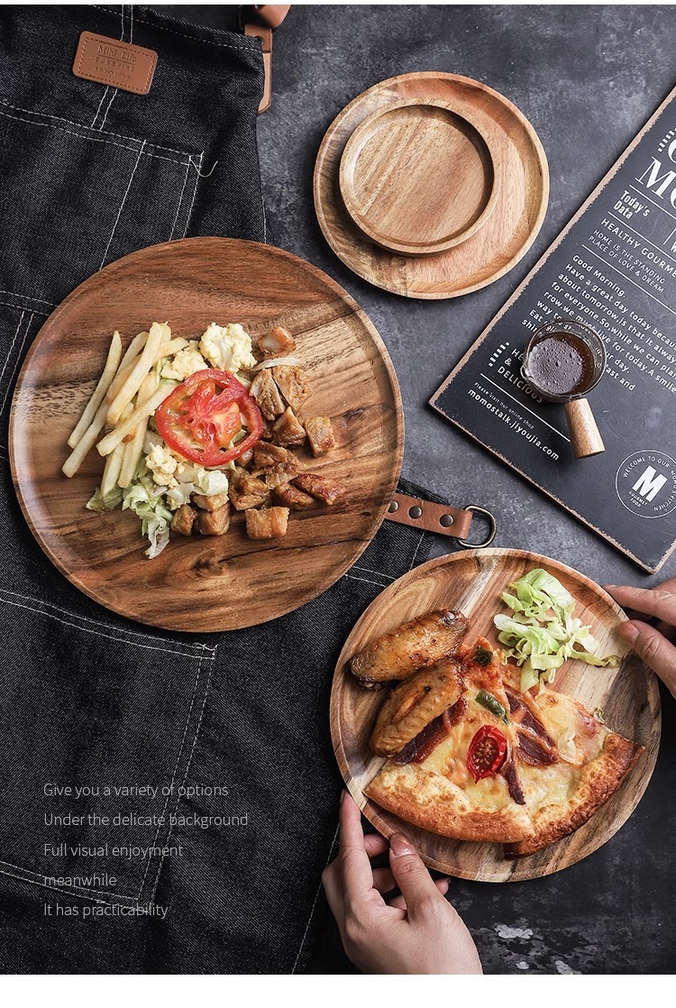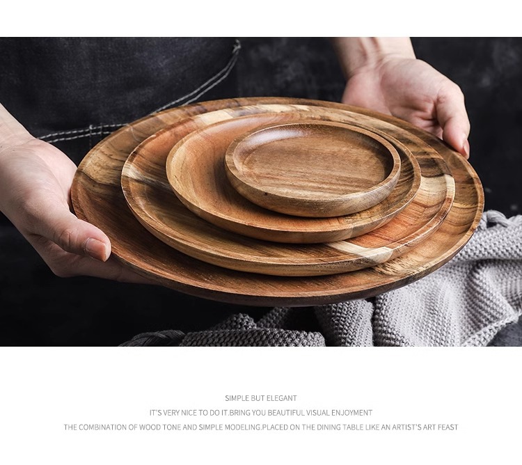 japanese-style acacia wood pallet round breakfast plate solid wood dessert cake plate snack dish household water cup storage tray 中文版