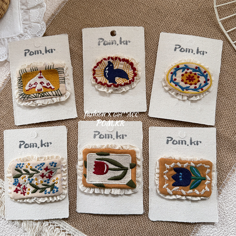[2] oval flower embroidery