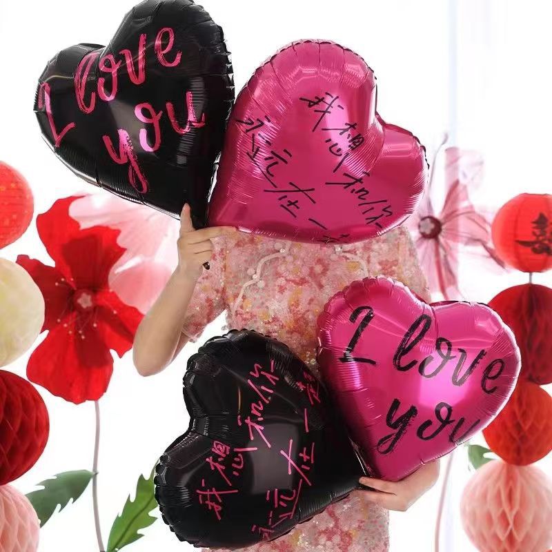 Customized aluminum film balloons with printing, large-scale event advertising logo, QR code printing, heart-shaped balloons for supermarkets.