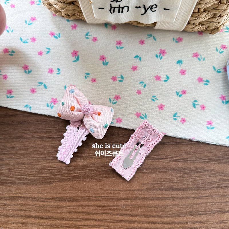 [1] pink bow tie barrettes