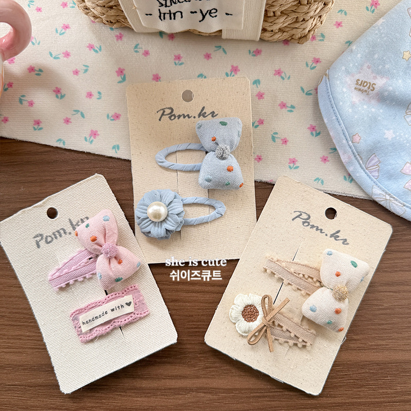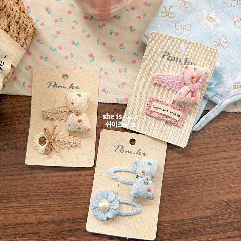 [3] beige coffee bow barrettes
