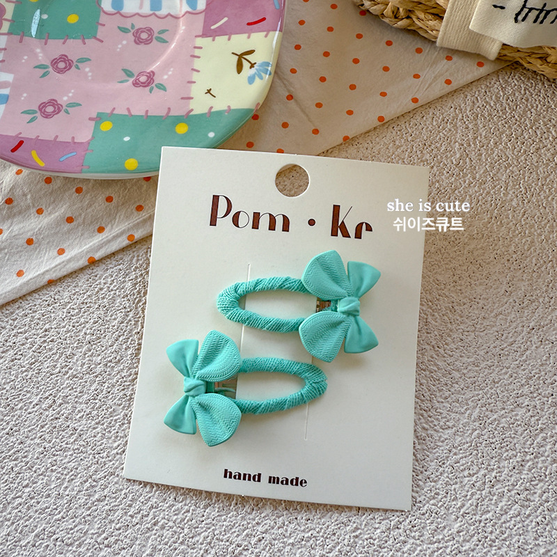 [3] green bow barrettes