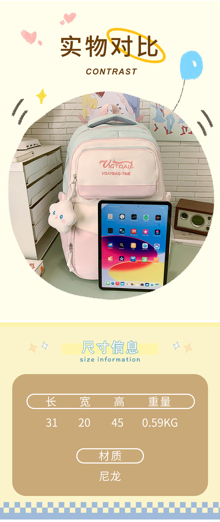 2025 new cute ins korean style large capacity junior and middle school students schoolbag all-match and sweet lightweight backpack backpack 中文版