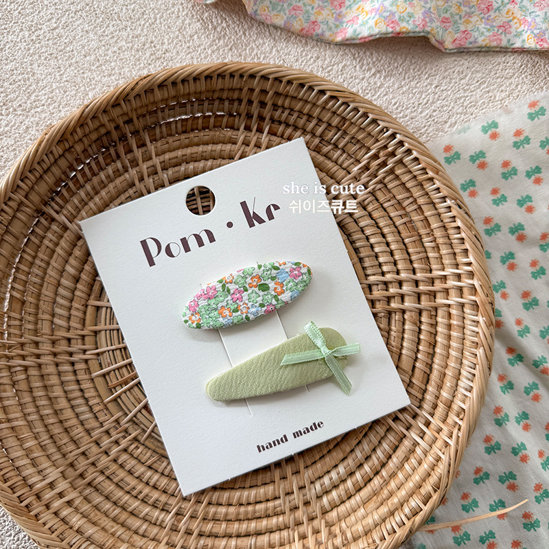[2] green floral barrettes