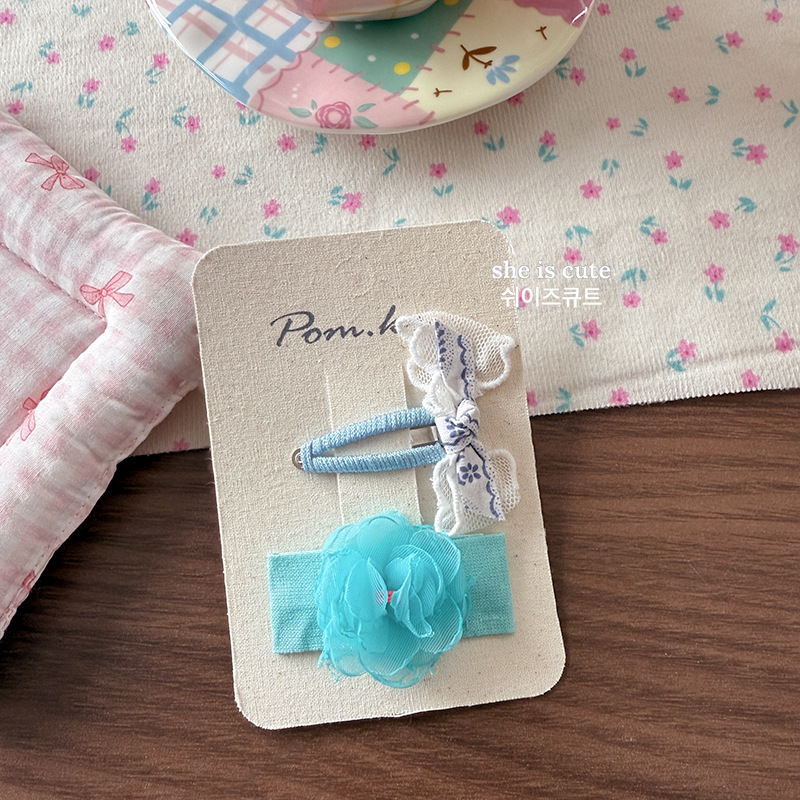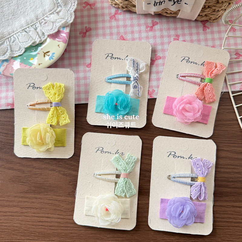 [4] green bow flower barrettes