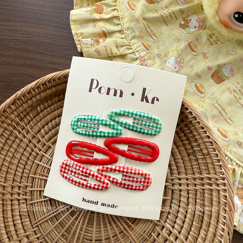[8] blue plaid apple print bb clip