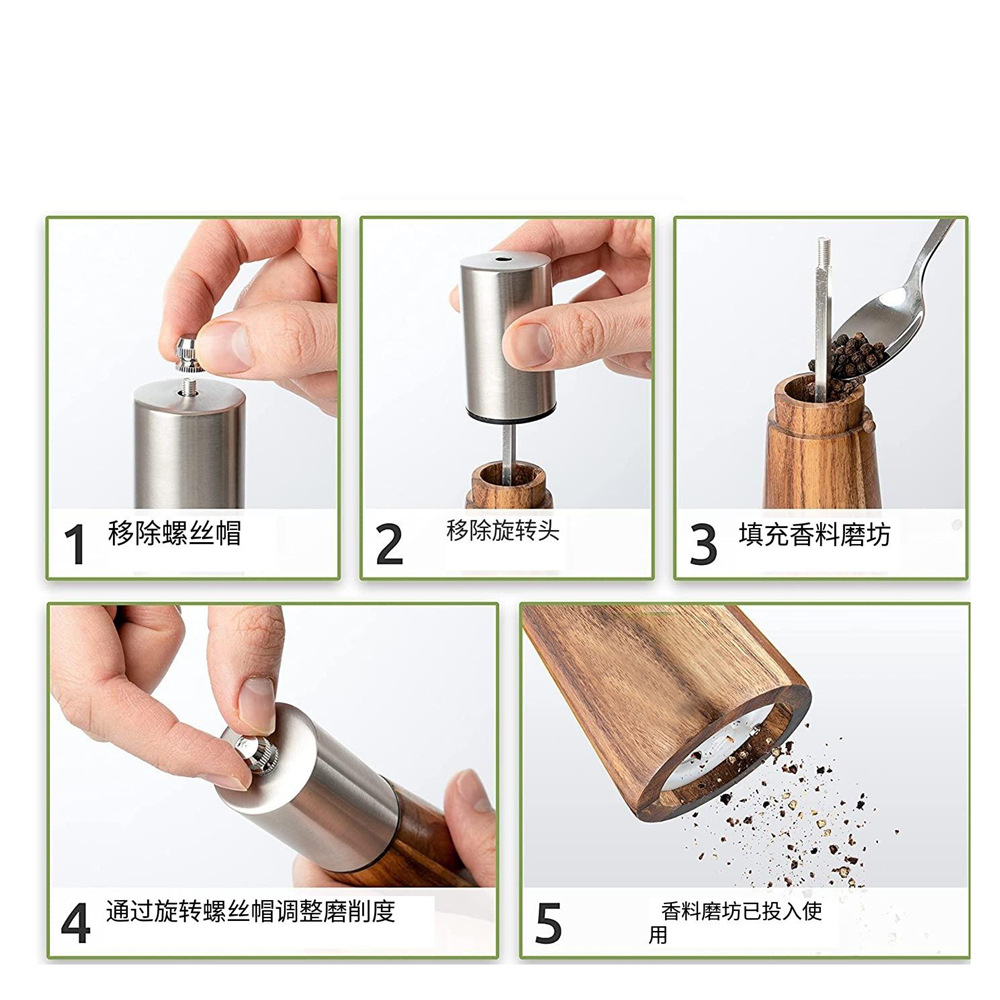 stainless steel pepper mill manual sea salt peppercorn grinder kitchen multi-purpose seasoning bottle black pepper grinder base 中文版