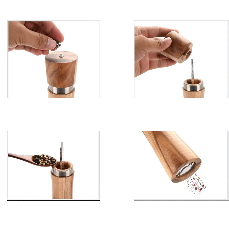 steel ring pepper grinder manual acacia mangium pepper mill black pepper grinder multi-purpose seasoning bottle 中文版