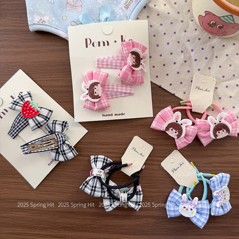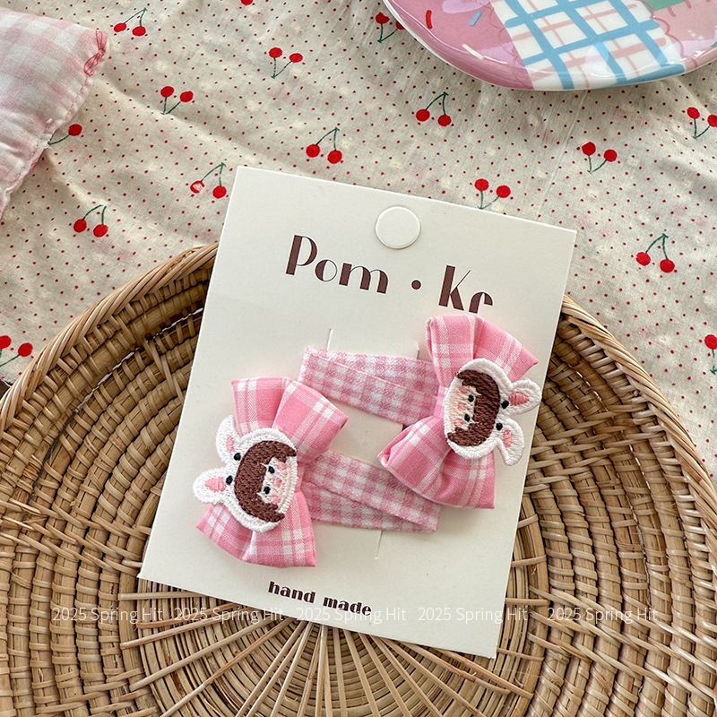 [2] pink bow rabbit barrettes