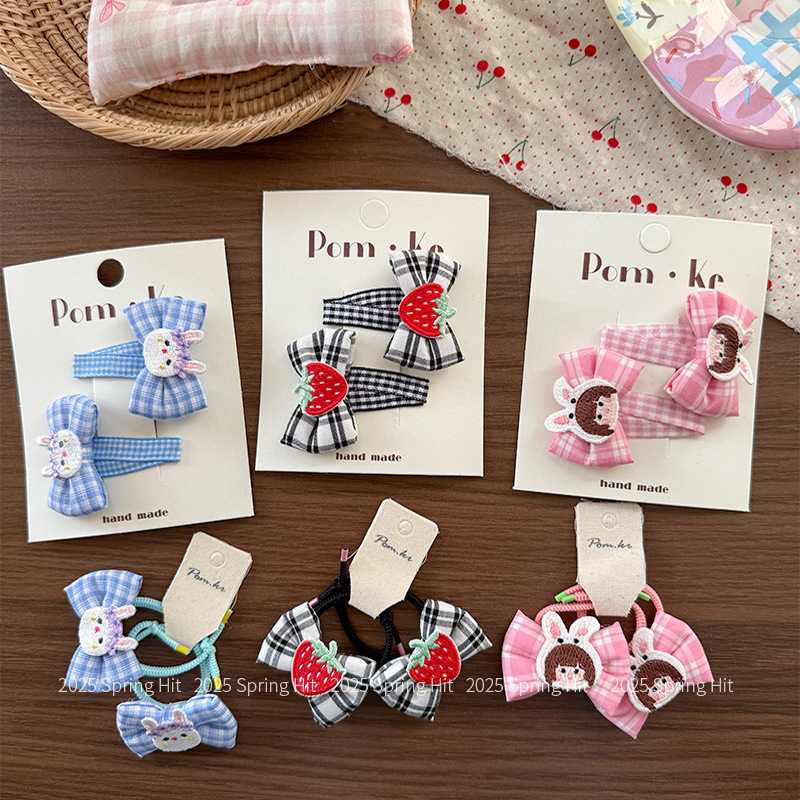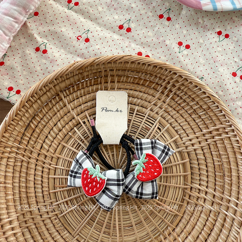 [4] black bow strawberry rubber band