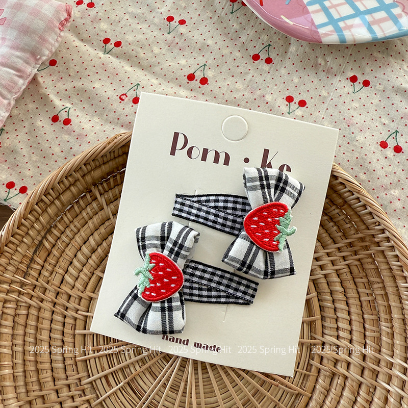 [1] black bow strawberry barrettes