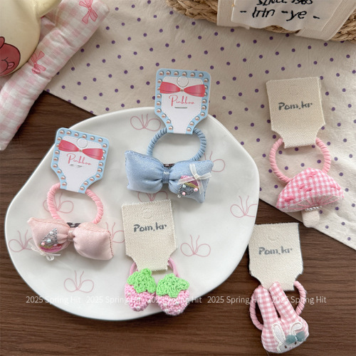 korean cartoon cute bow girl's heart all-match horsetail hair band rubber band children's high elasticity does not hurt hair rope