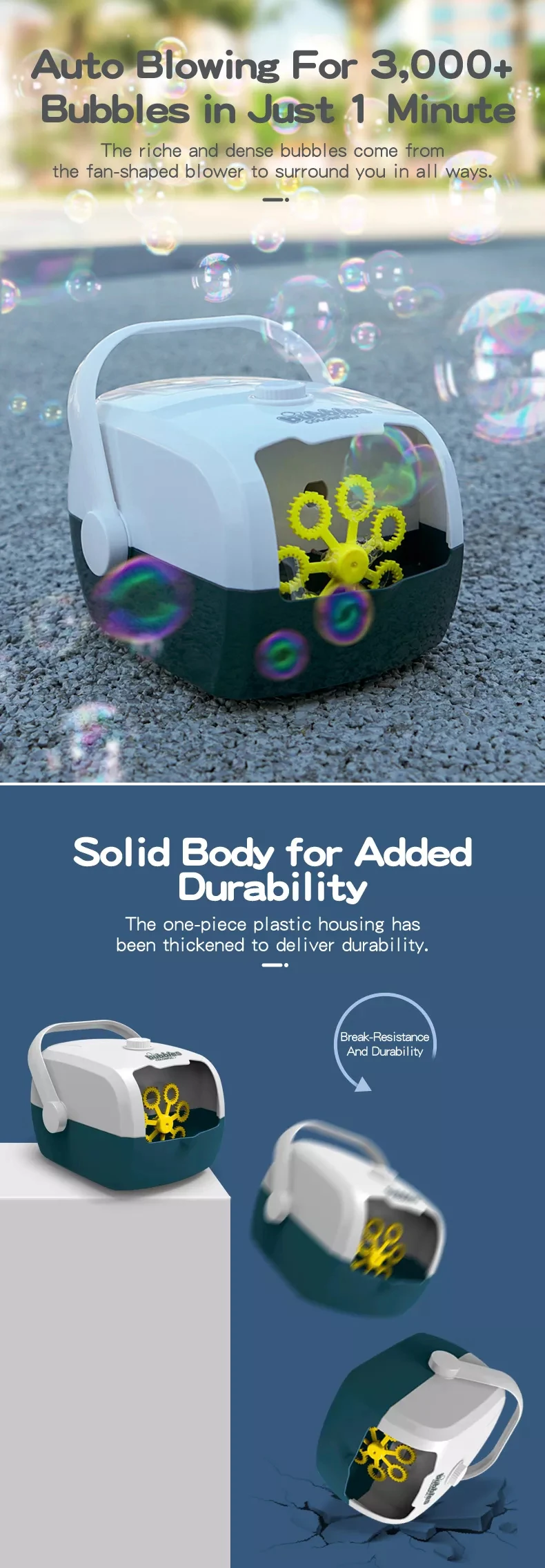 Factory Indoor & Outdoor Party Electronic Bubble Blower Machine Automatic Portable Bubble Maker Kids 3000 Bubbles Per Minute