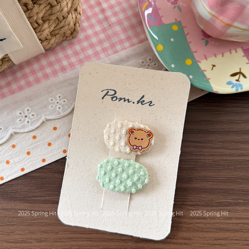 [2] green bear barrettes
