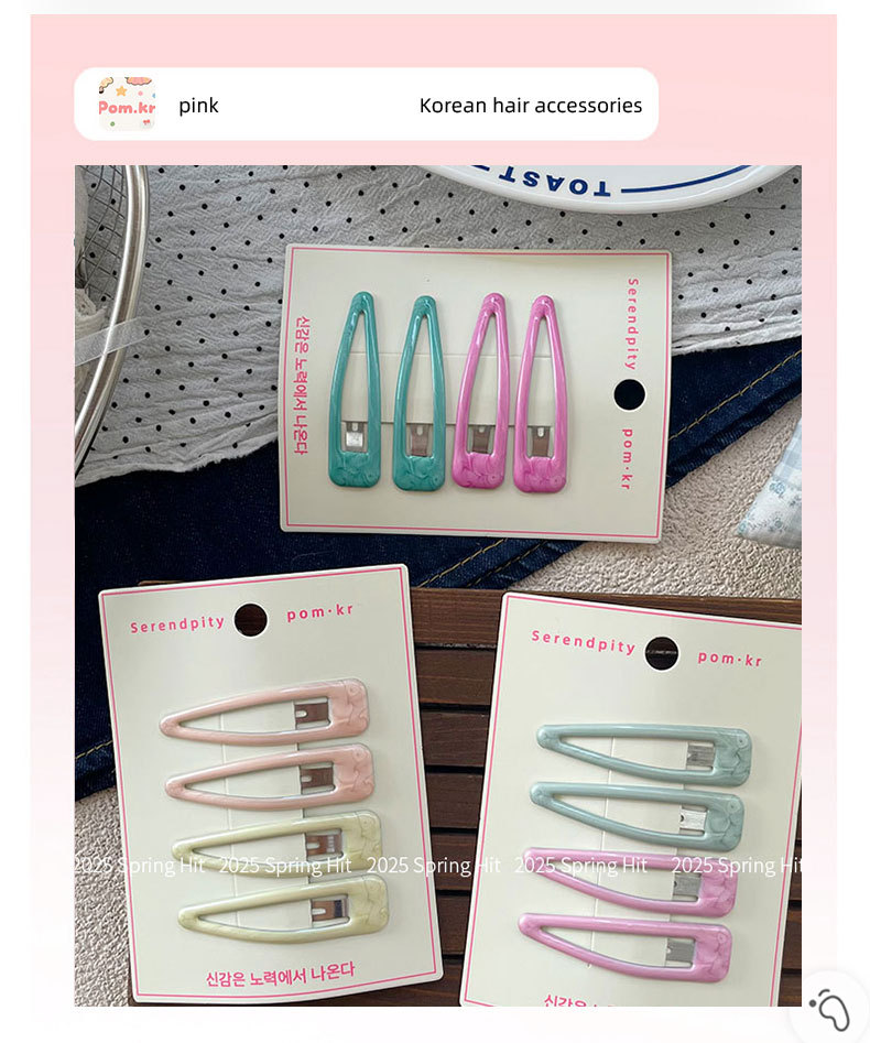 [1] rose pink + green barrettes